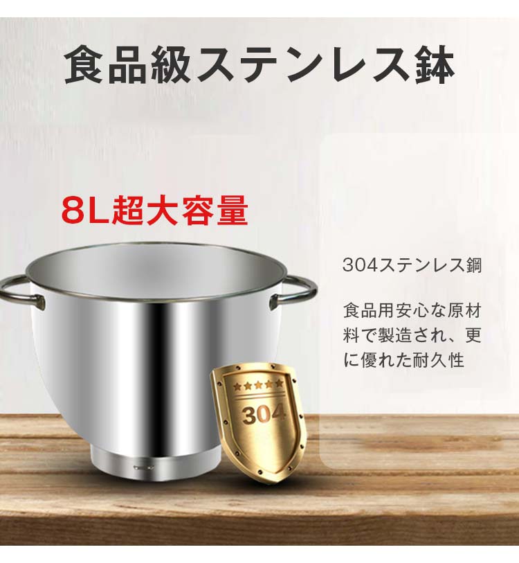 スタンドミキサー 8L超大容量 四種類