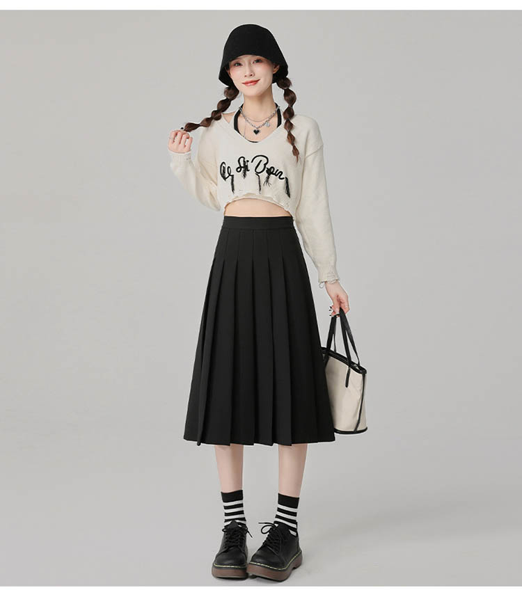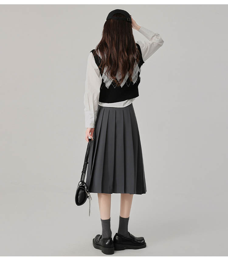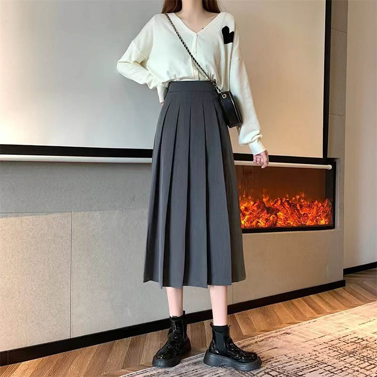 プリーツスカート 黒 ミモレ丈 ビジネ