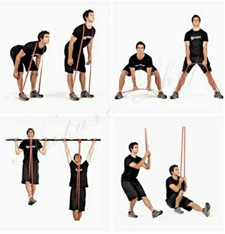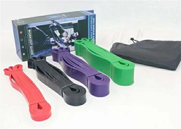 収納ポーチ付き ストレッチ 天然ラテックス製 エクササイズバンド 筋トレチューブ 懸垂アシスト 懸垂補助 トレーニングバンド 強度別4本セット フィットネスチューブ