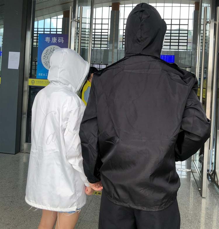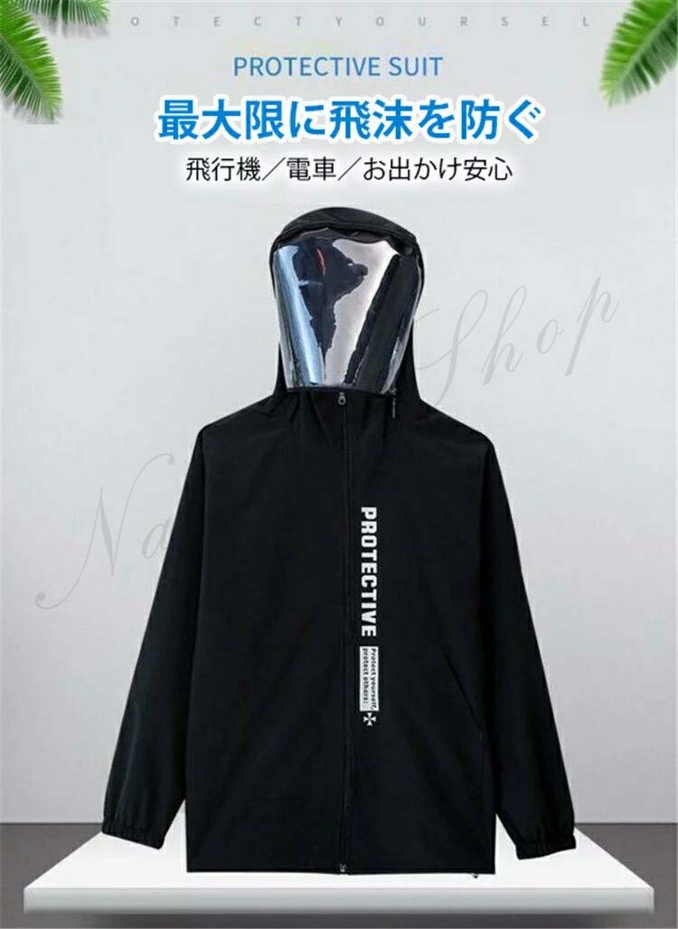 フェイスガード アウター 襟付き フード付き 春秋対応 透明シールド ジャンパー 長袖 ペアルック 男女兼用 カップル 大人用 コート 防護服 防護マスク 飛沫防止 保護服 長袖 シンプル