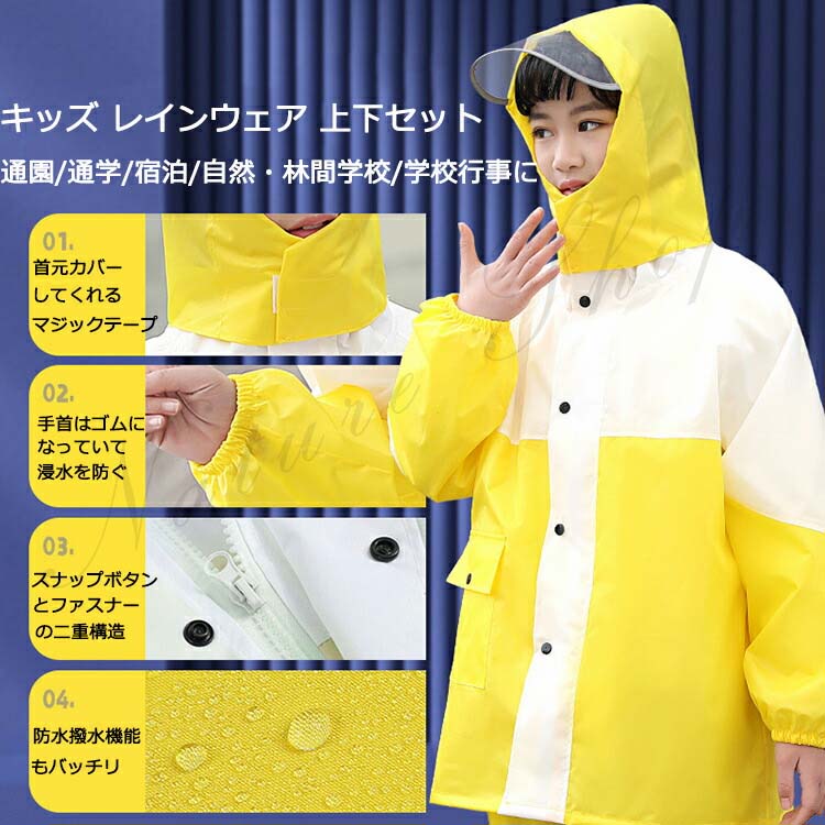 男の子 女の子 130 140 入園 170 160 ランドセル対応 キッズ カッパ 通園 収納バッグ付き 防水 レインコート 通学 XL-4XL カッパ ラシニコ シンプル 120 150 110
