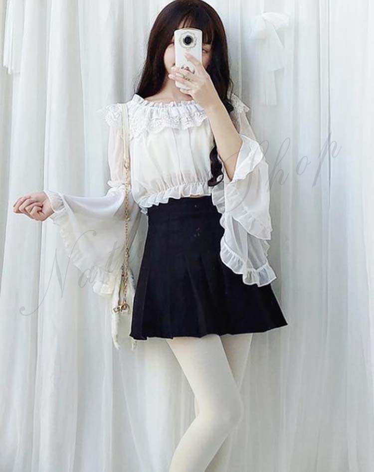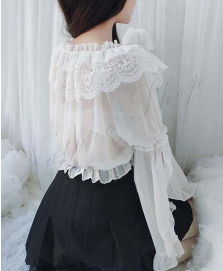 シャツ レースlolitaシャツ シフォン上着 姫系メード服 大人 レディース インナ付 中高生コスプレブラウス ロリータブラウス 長袖 袖フリル 二次元コスプレ衣装 萌え萌えブラウス