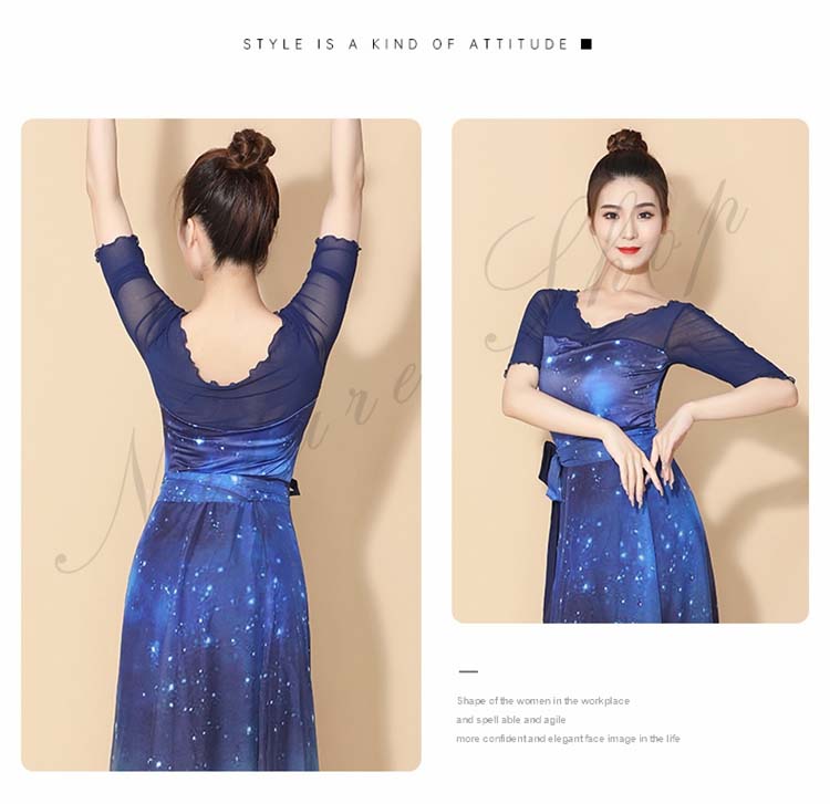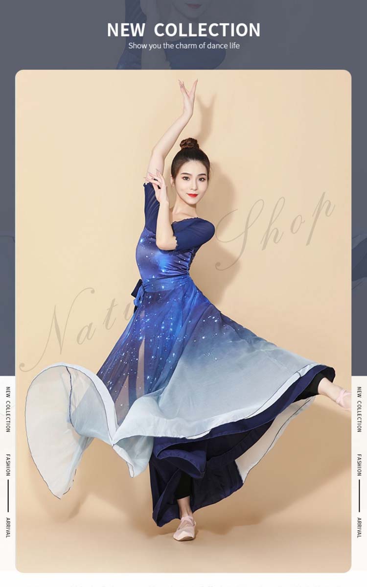 シリーズダンス衣装 中国踊り 表裏兼用 エレガント スカート 大人 レディース 大きい裾 星空 古典舞踊 練習着 レオタード 飄逸 リバーシブル ダンス モダンダンス 巻きスカート