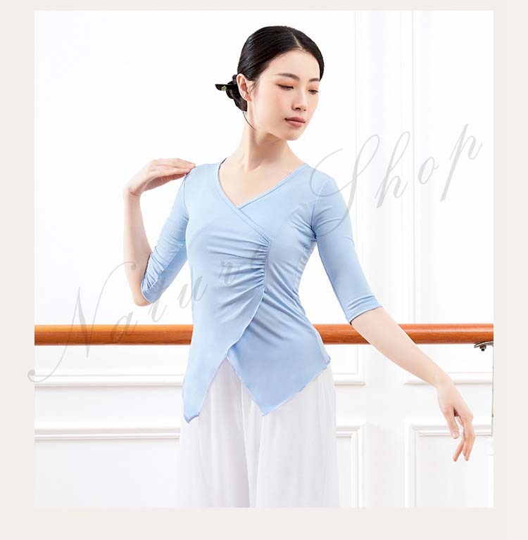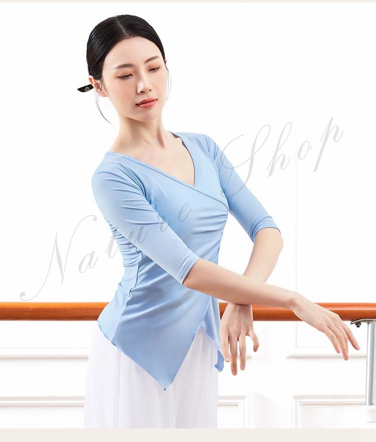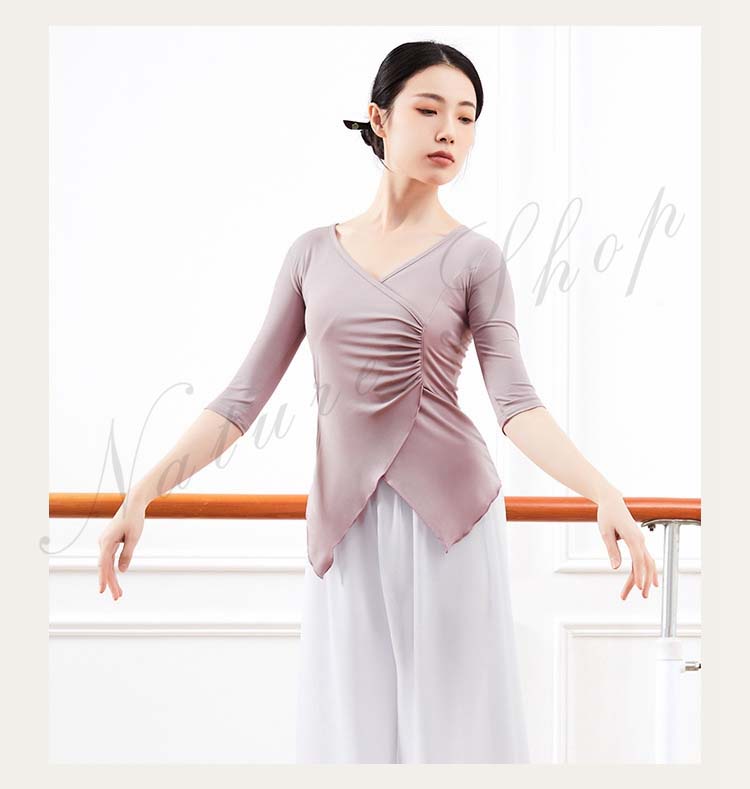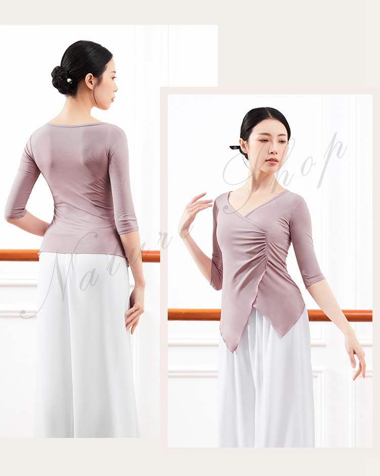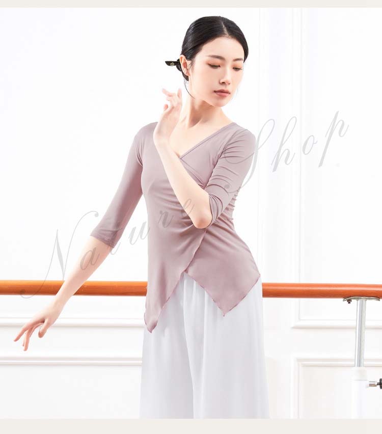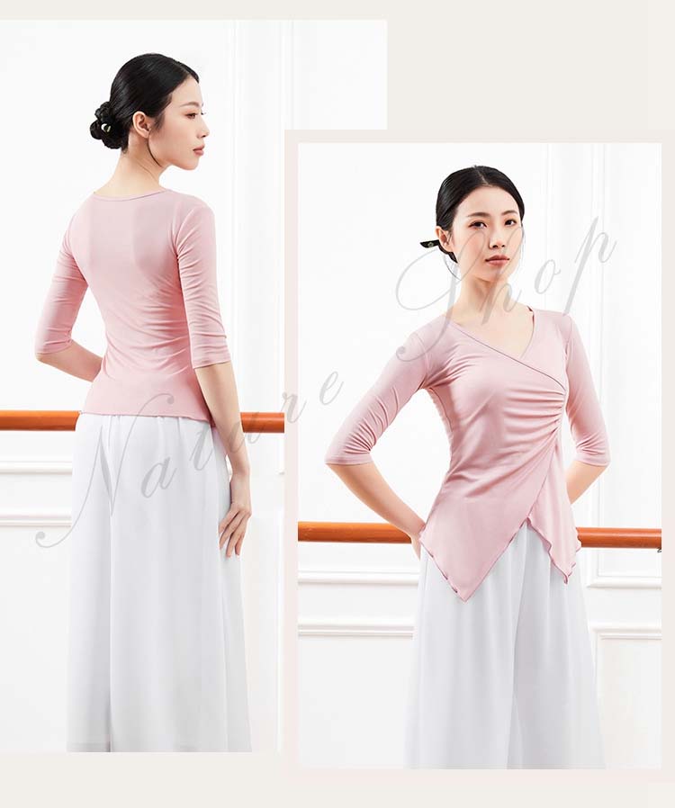 レディース Vネック 練習着 春夏新作 黒 ピンク 五分袖 紫 衣装 Tシャツ バレエ 社交ダンス ダンスウェア レッスン着 大人 エレガント ベリーダンス S アシンメトリー トップス