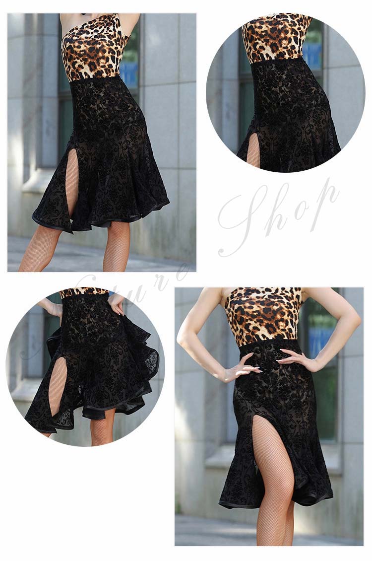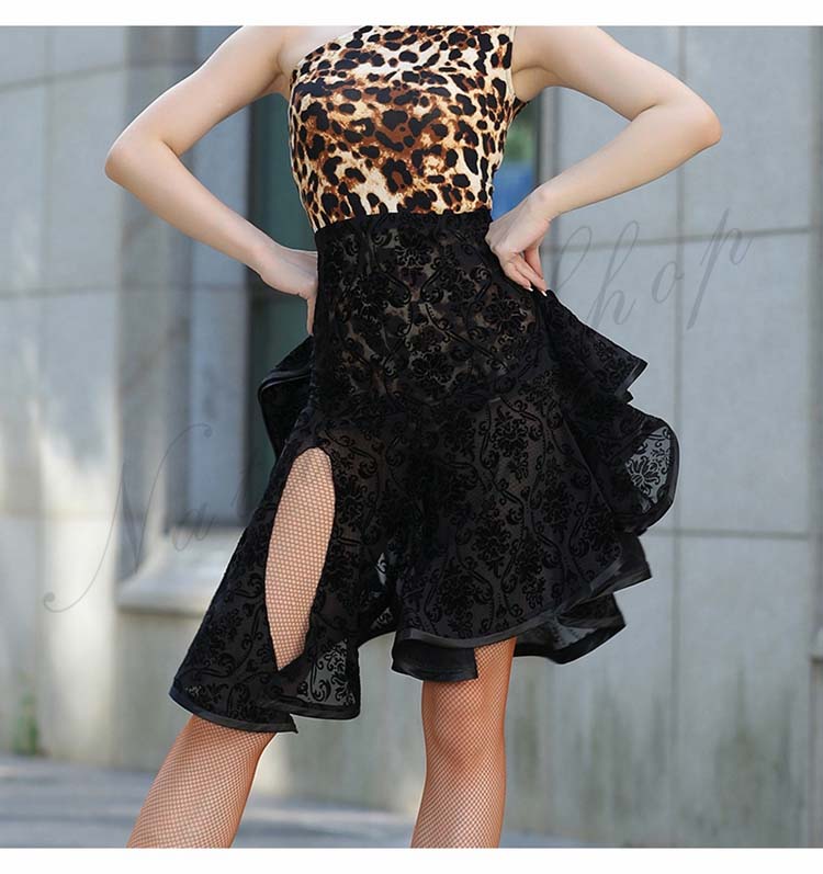 総レース 膝丈 ダンス M L フリル裾 XL ダンス ショート丈 社交ダンス レッスン着 S ドレス 花柄 セクシー 大人用 スカート スカート モダンダンス 黒 透け感有り 練習着