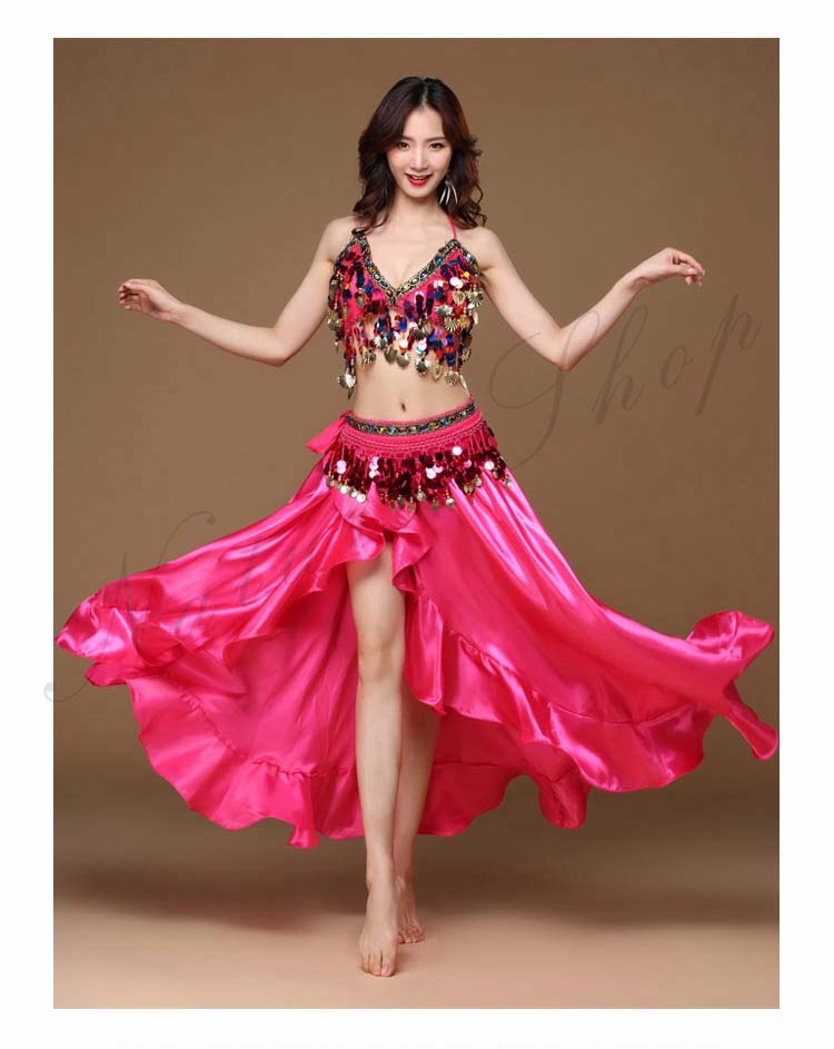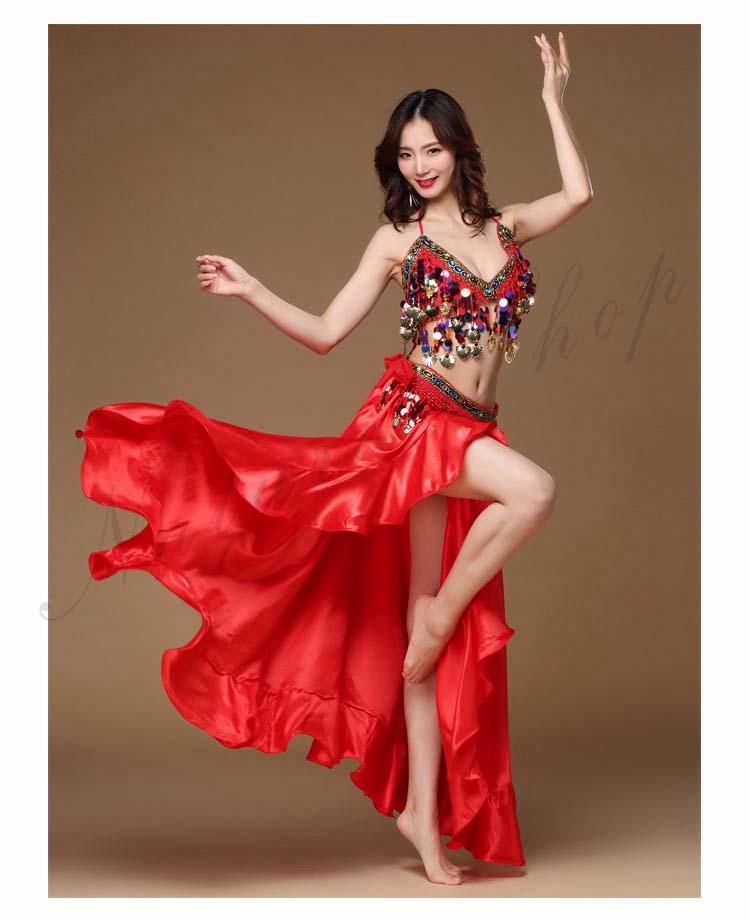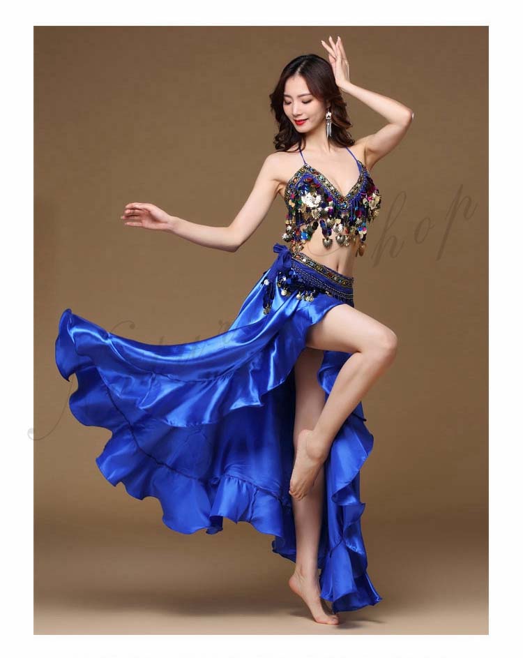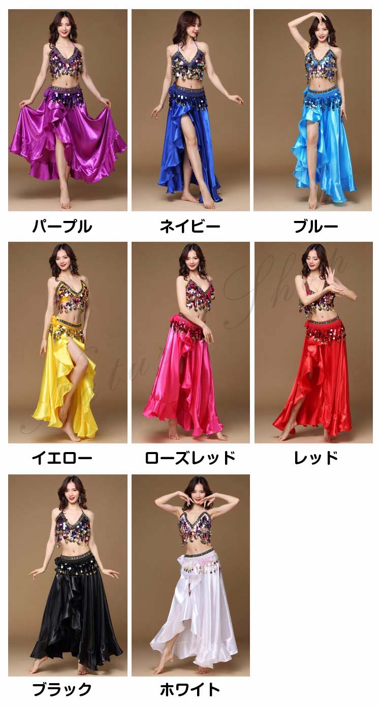 大人 ラテン ハイスリット イベント 8色 余興 Belly ダンス 衣装 dance ブラジャー スパンコール BAR 裾フリル セクシーコスチューム レッスン着 ブリンブリン 社交ダンス 3点セッ