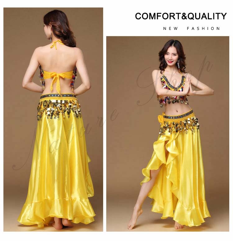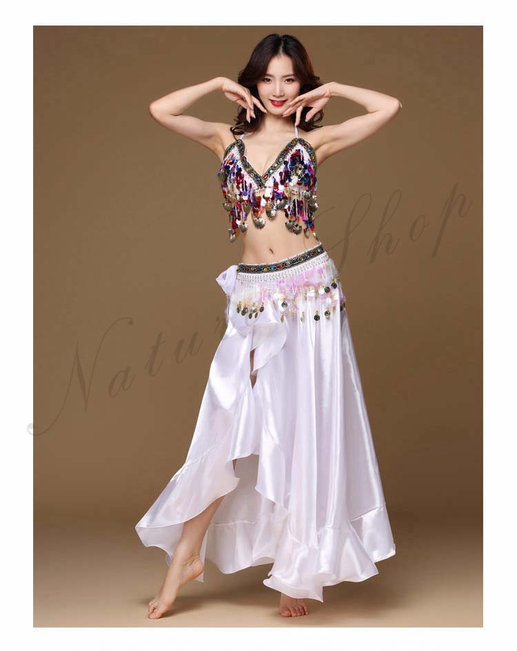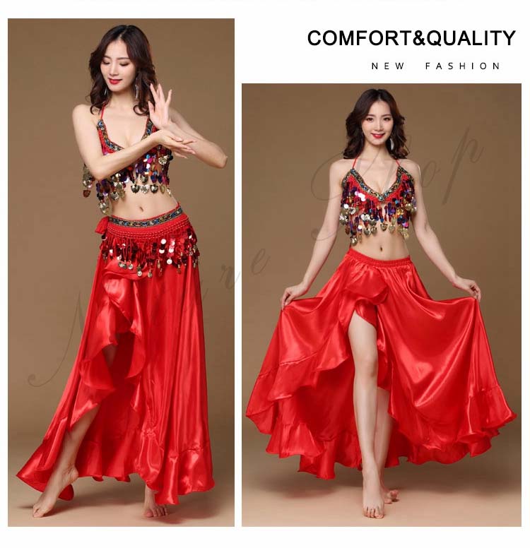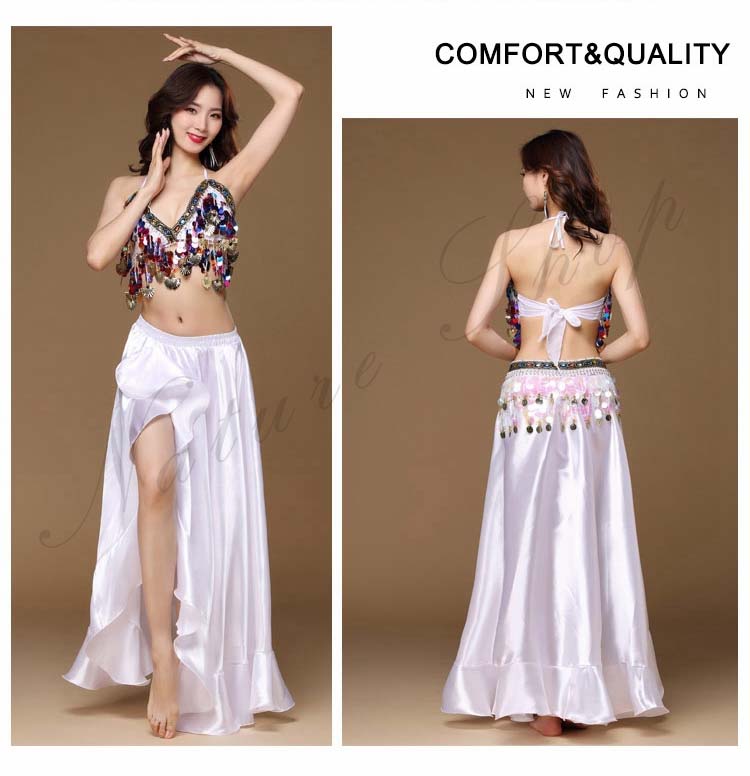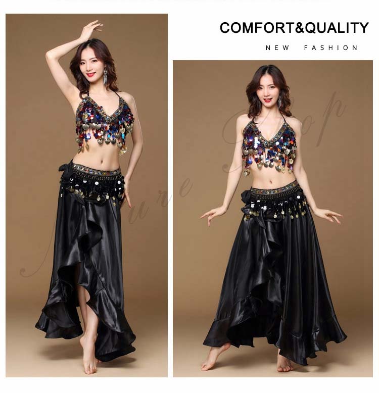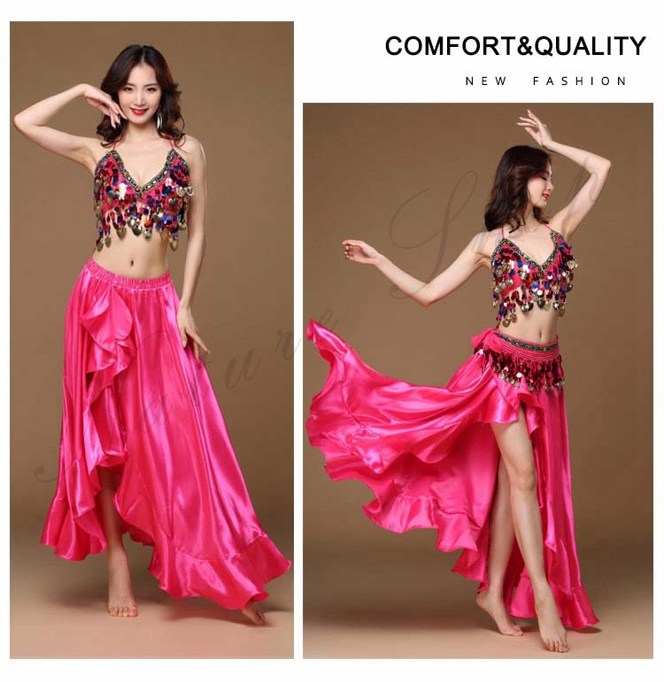 大人 ラテン ハイスリット イベント 8色 余興 Belly ダンス 衣装 dance ブラジャー スパンコール BAR 裾フリル セクシーコスチューム レッスン着 ブリンブリン 社交ダンス 3点セッ
