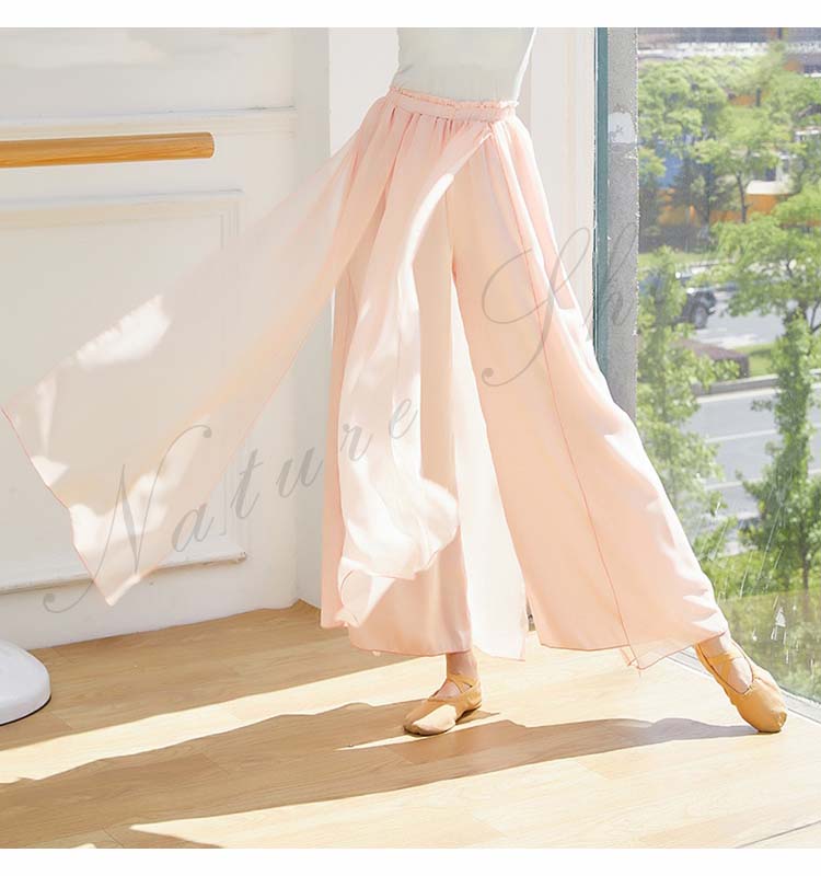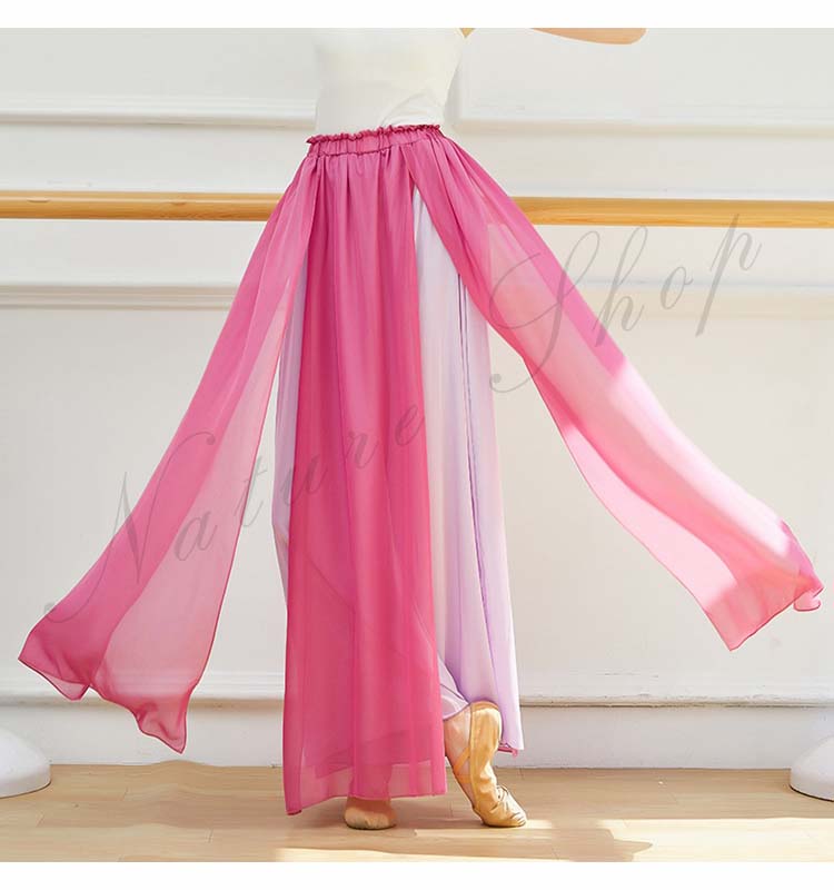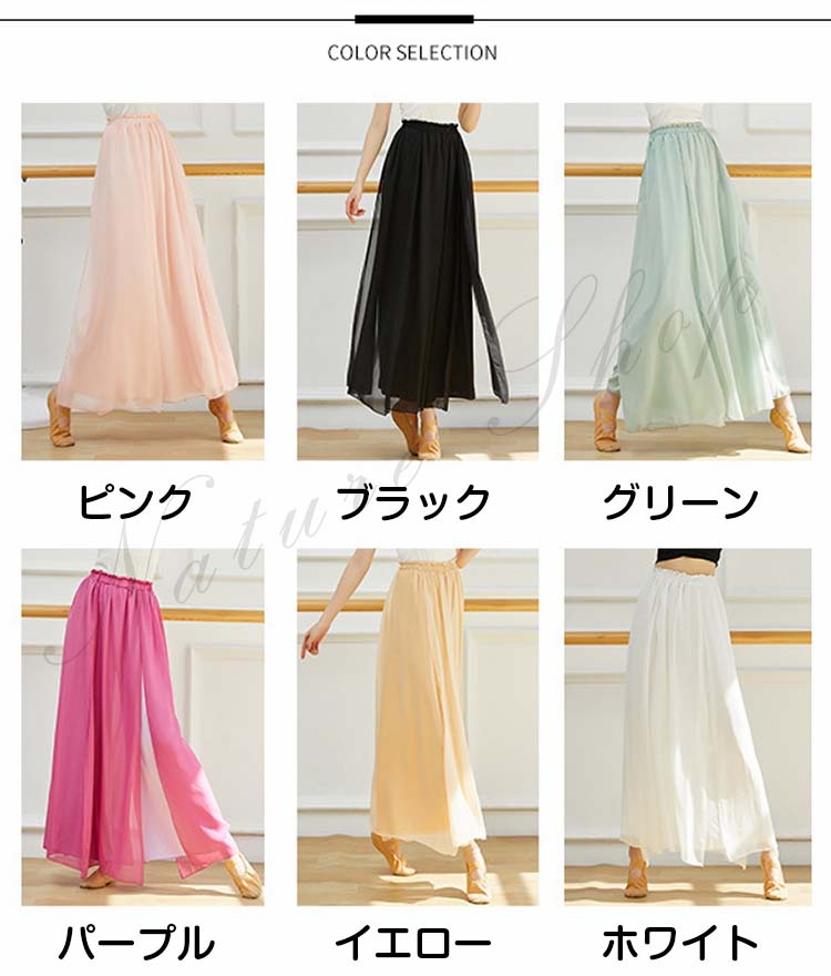 シフォンガウチョパンツ XL リボン スカーチョ 春夏 ピンク 新作 サルエル 白 パンツ ワイドパンツ パンツ バレエ 大人用 配色 エレガント ロング レッスンウェア 黄 ひらひら