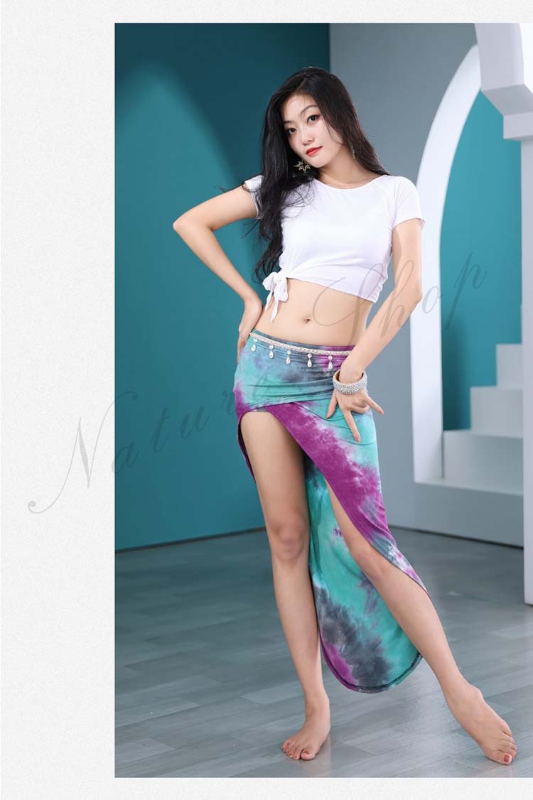 社交ダンス 半袖 セクシー 夏新作 黒 練習着 白 衣装2点セット レッスンウェア 裾リボン ロングスカート 練習ウェア ラテンダンス Belly アシンメトリー裾 ストレッチ ショート丈