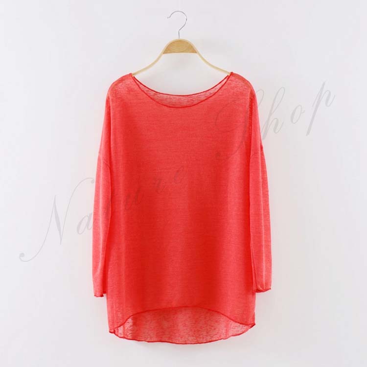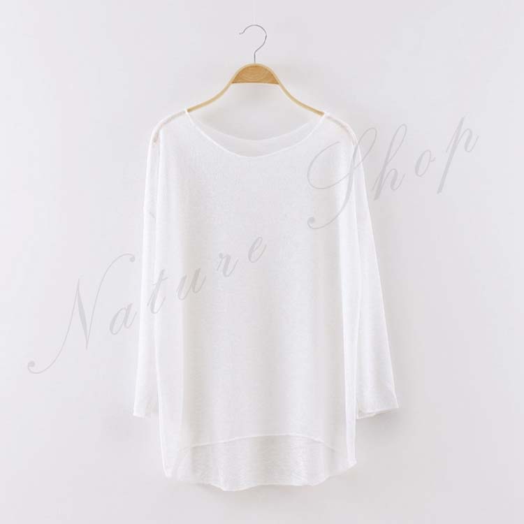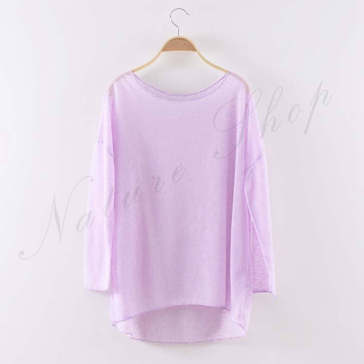 透視感あり トップス長袖Tシャツブラウ