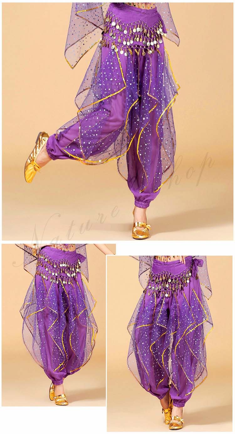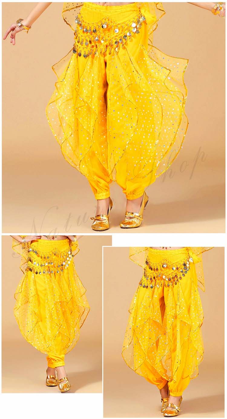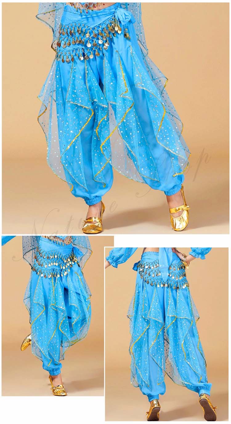 可愛い社交ダンスパンツ ボトムス ズボン+ヒップスカーフ リボン スパンコール レディース大人用 ベリーダンス ジプシー練習レッスン着 7色 ひらひら アラビアンダンスパンツ