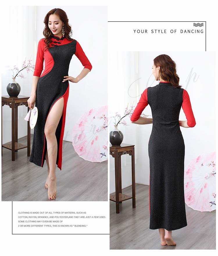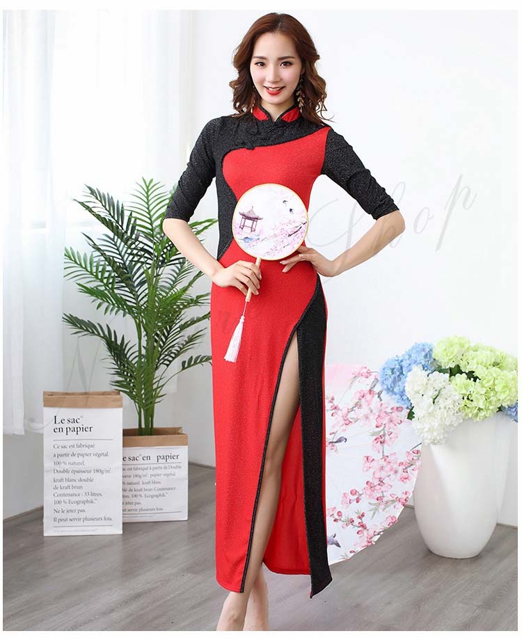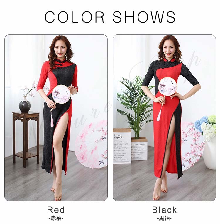 モダンドレス 黒赤配色ロングチャイナド