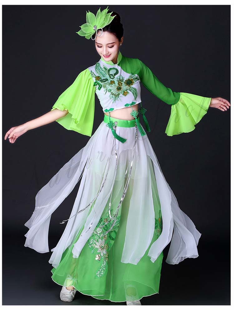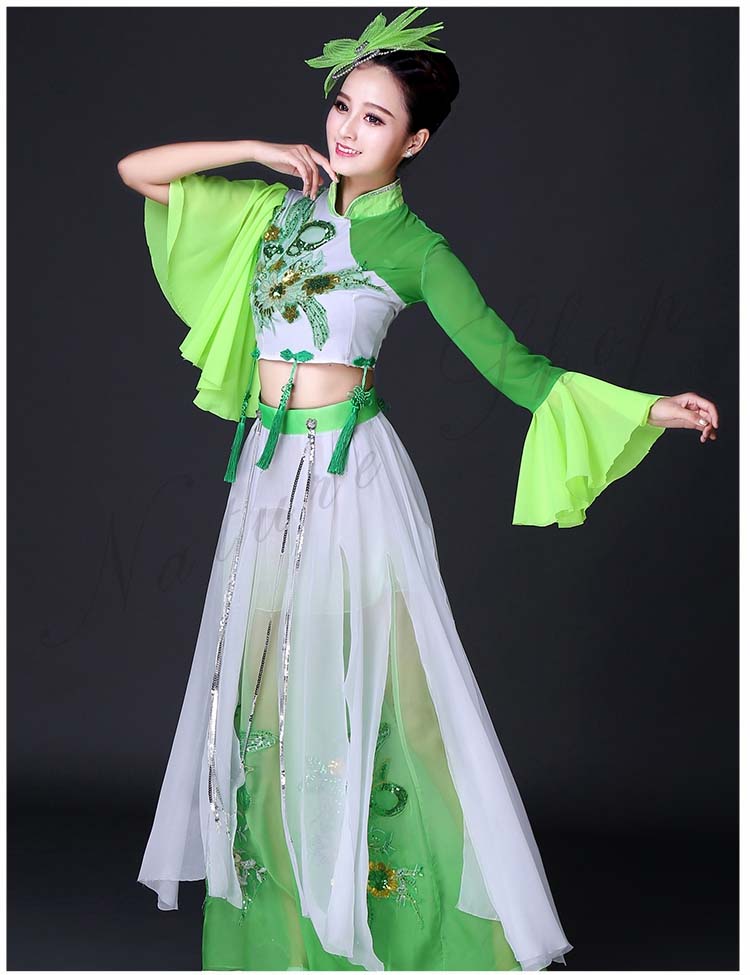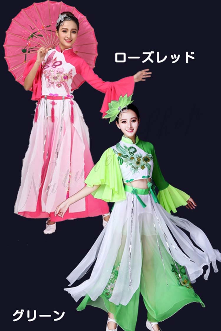 レディース 緑 セット ふさ 歌謡舞踊 S 民舞 古典舞踊 扇子 ダンス 衣装 ショート丈トップス 飄々 傘 チャイナ風 古典ダンス フリル袖 スパンコール M 半袖 衣装 ピンク 3XL 2XL