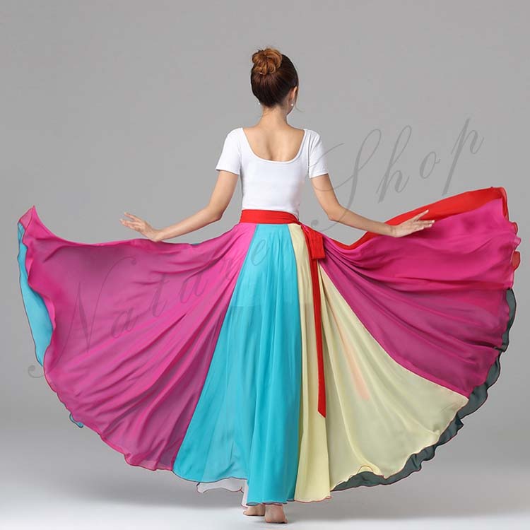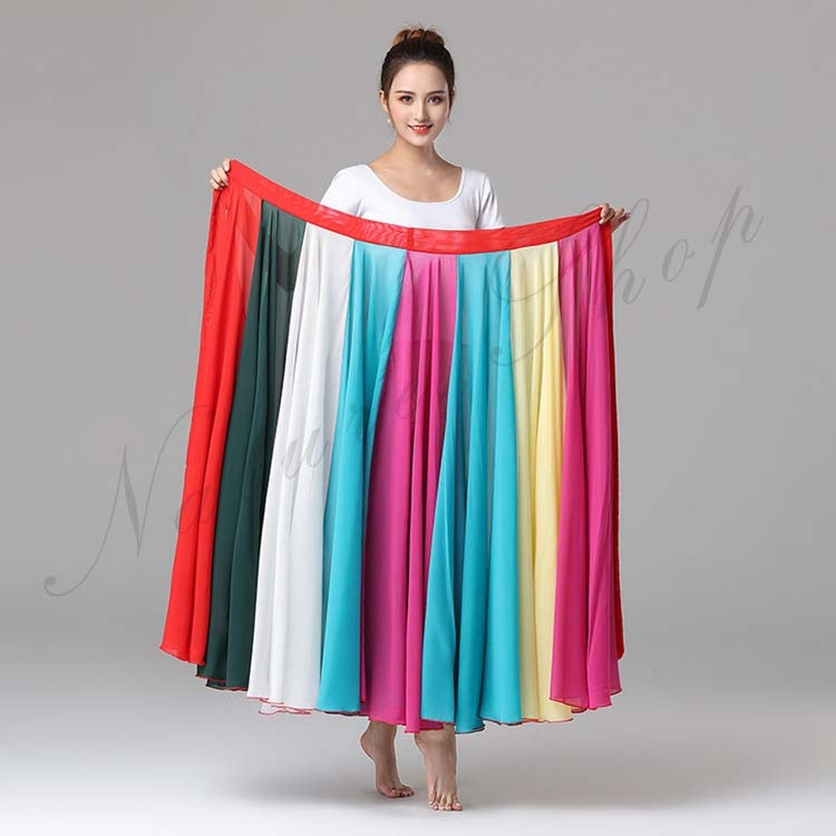 マルチカラー 巻きスカート モダンドレス 民族ダンス 練習着 配色 レッスンウェア ロング 大きい裾 95cm フレア 社交ダンス フラメンコ バレエ 90cm 古典ダンス 80cm スカート