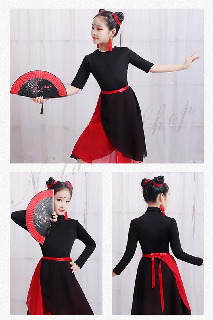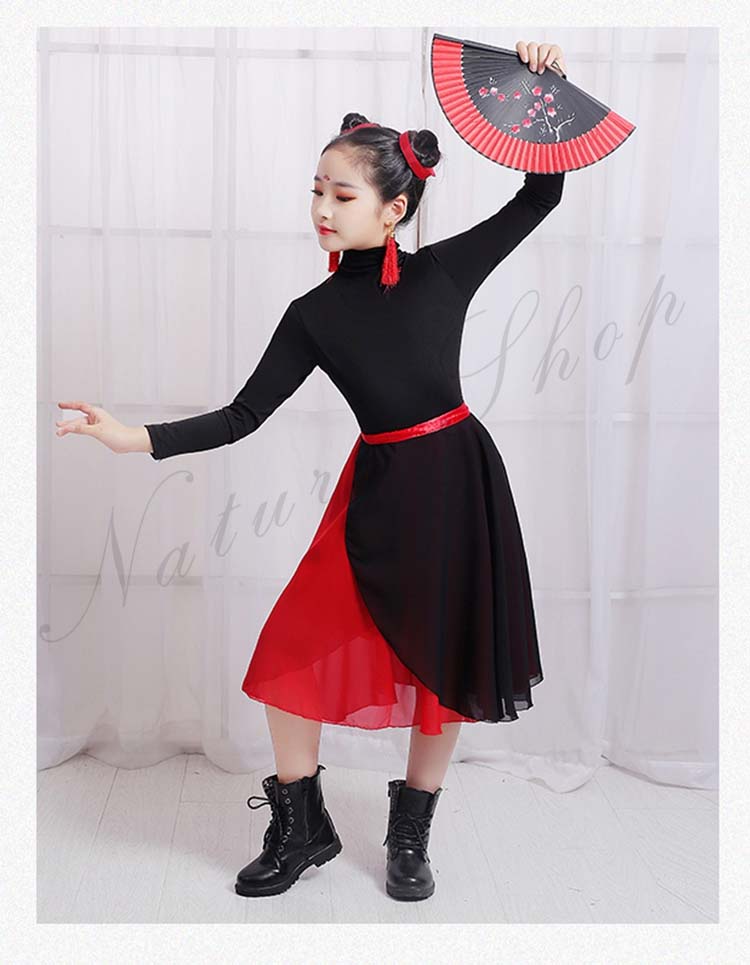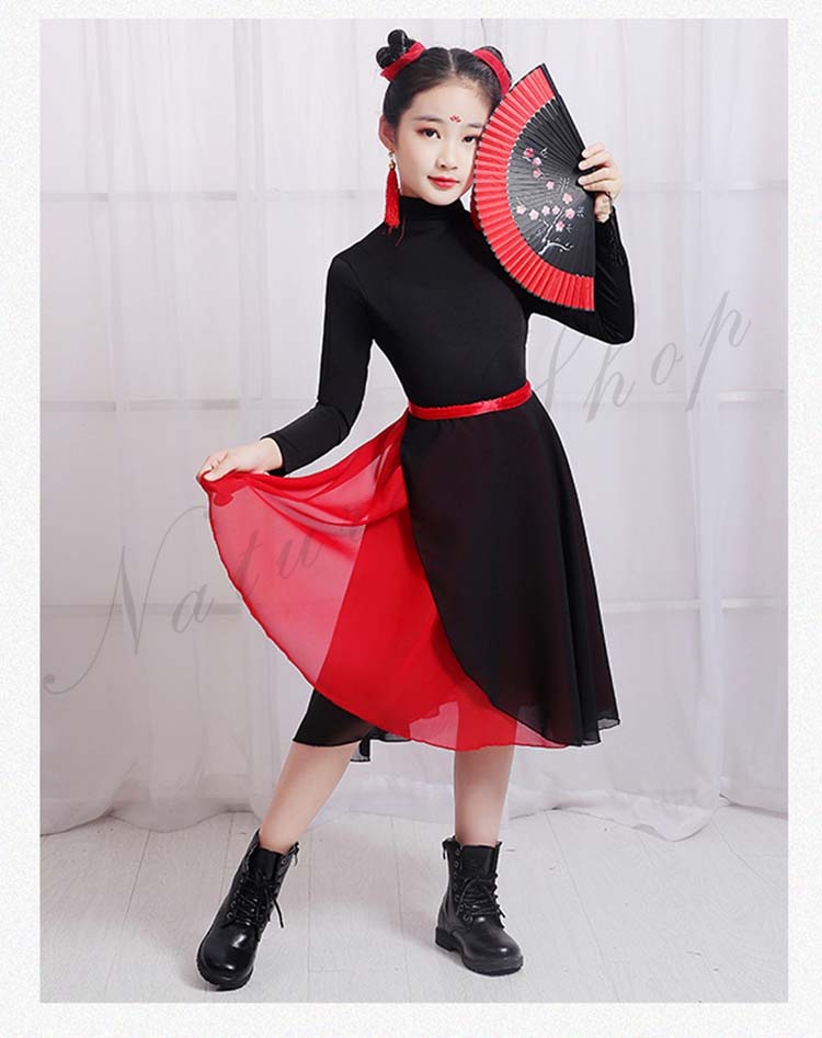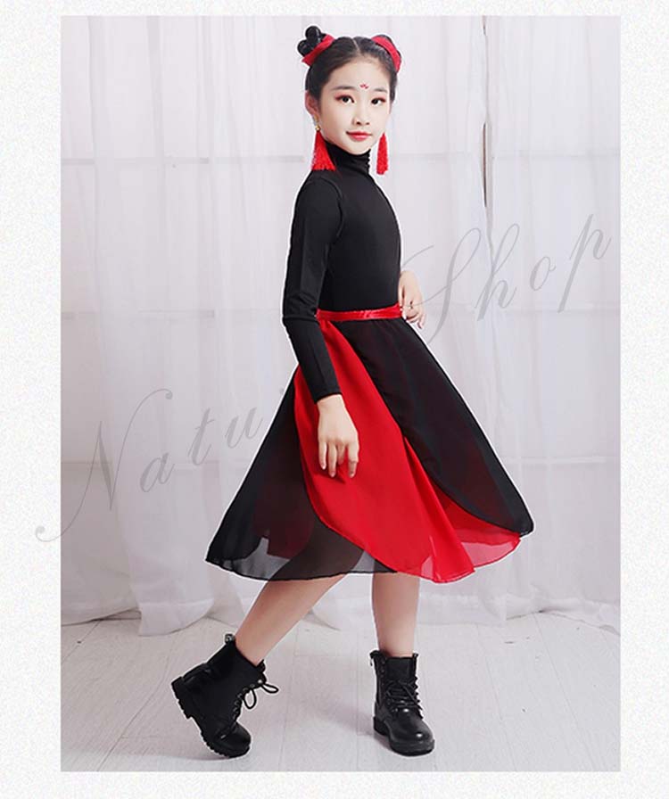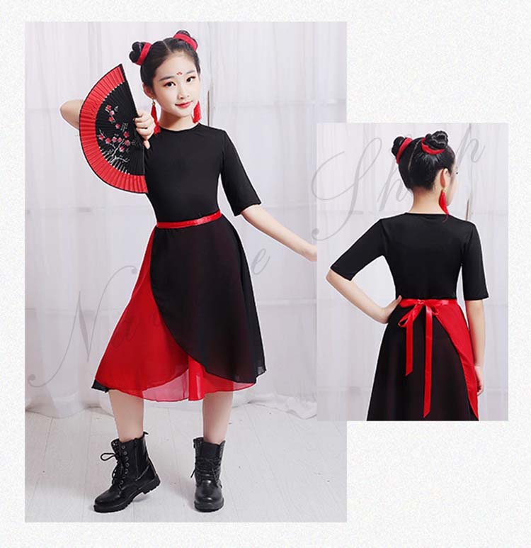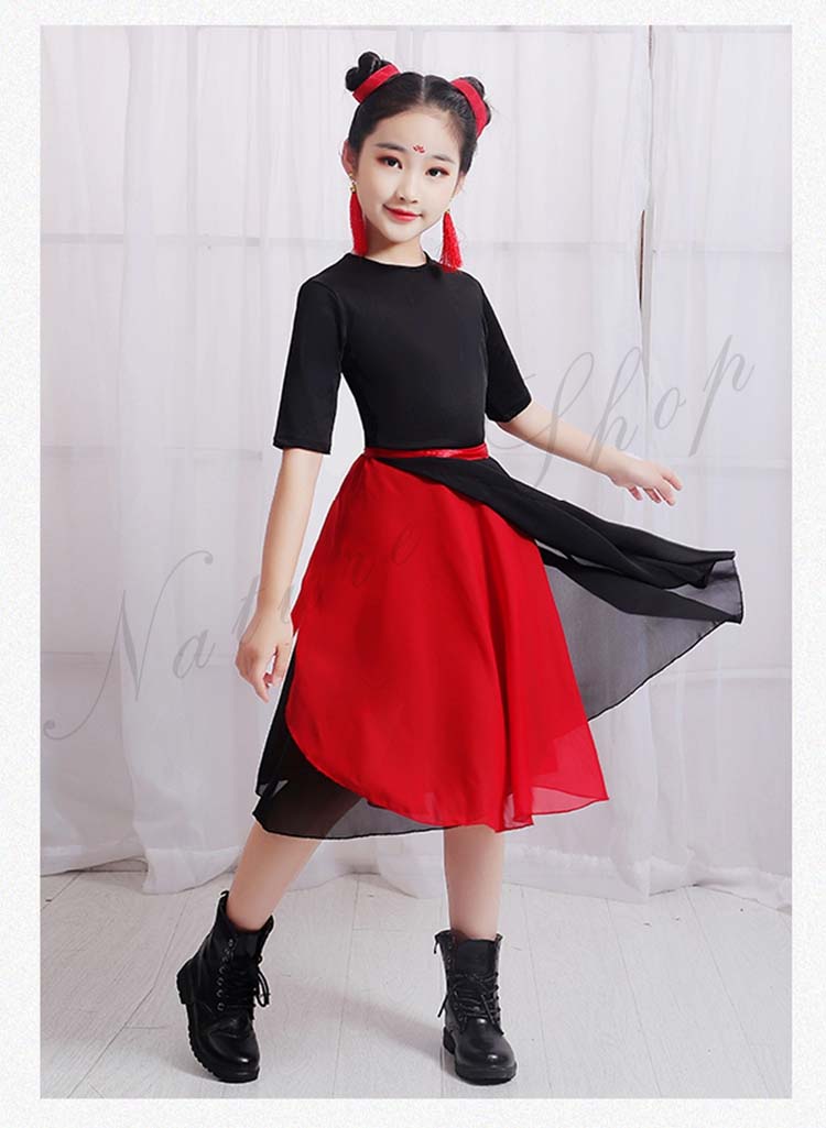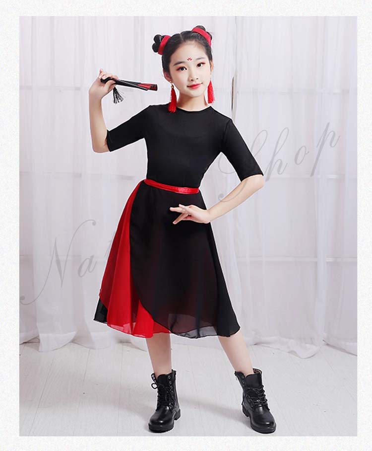 キッズ 練習着 モード ダンス 衣装110cm~160cm バレエ 2点セットアップ 社交ダンス 黒いTシャツ シフォン二枚 発表会 飄逸 学園祭 半袖 民族ダンス レッスン着 女の子