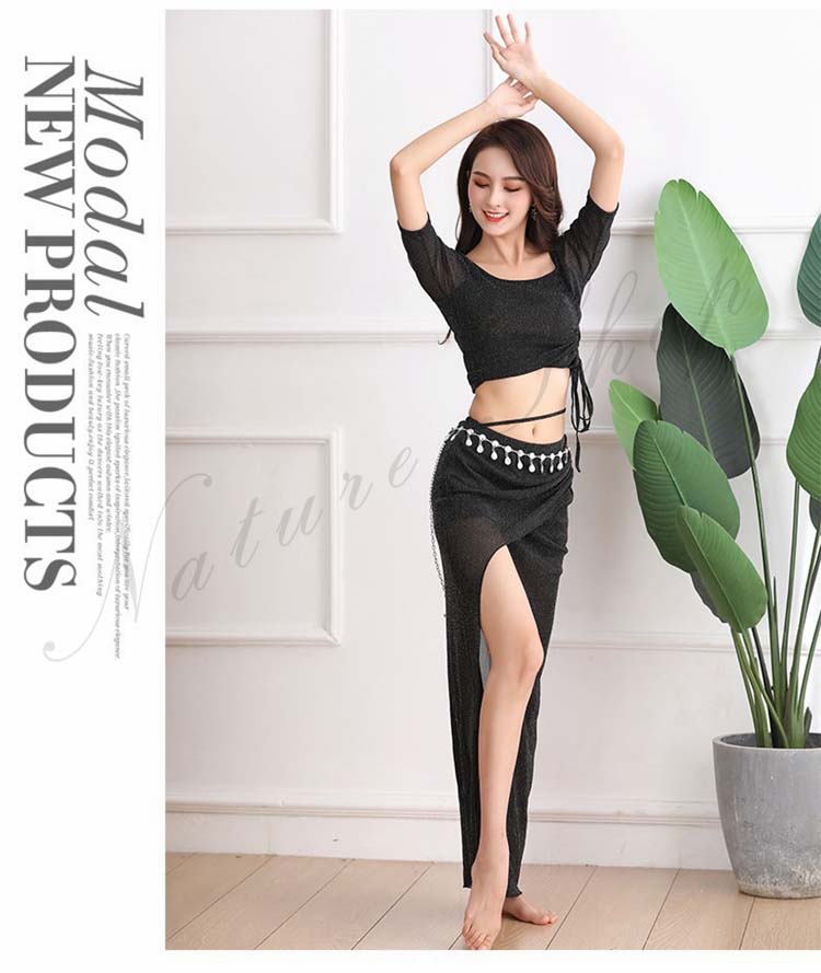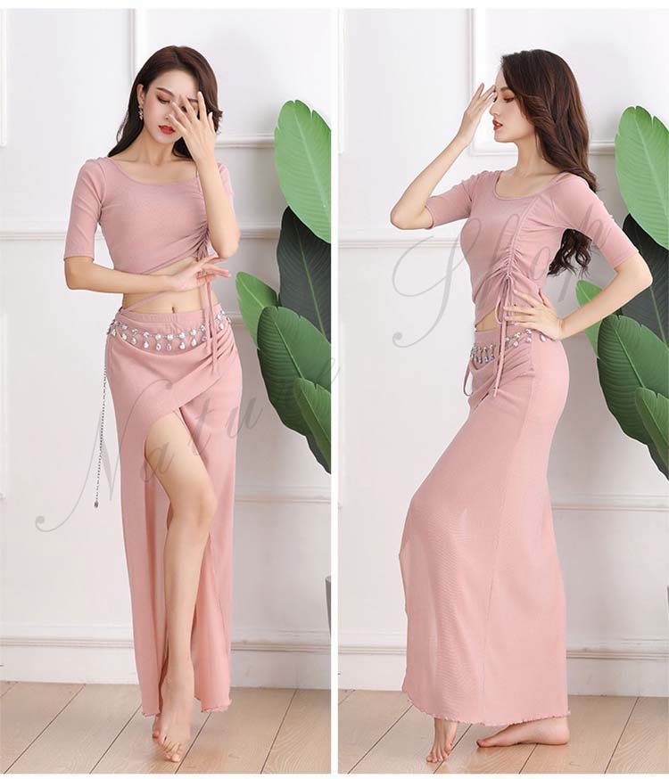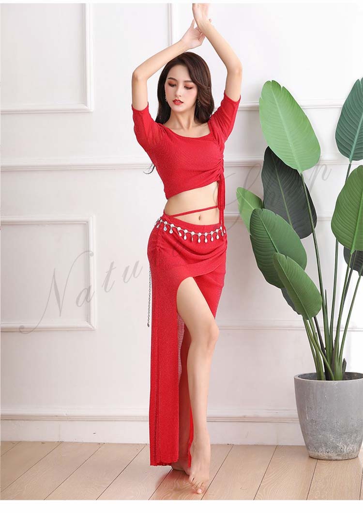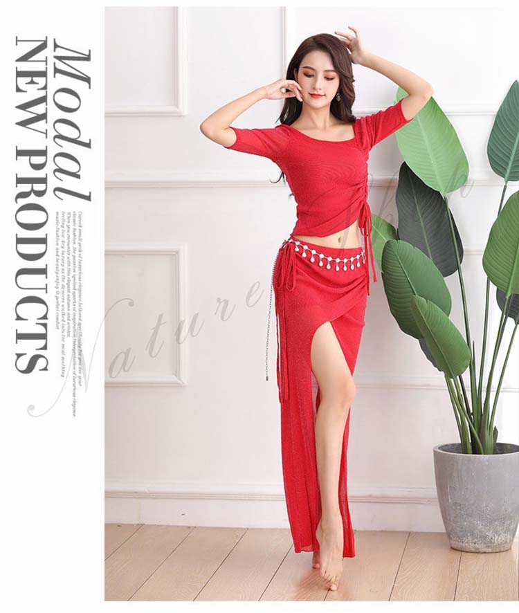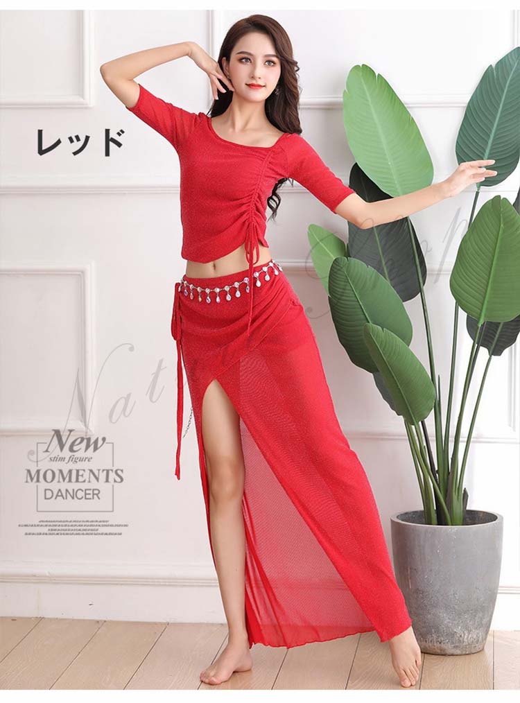 dance 練習着 美シルエット 黒 2XL 赤S 新作 M レディース ベリーダンス 肩出し 前スリット ピンク 社交ダンス レッスンウェア 半袖 セクシー 3XL レッスン着 Belly 紐調整