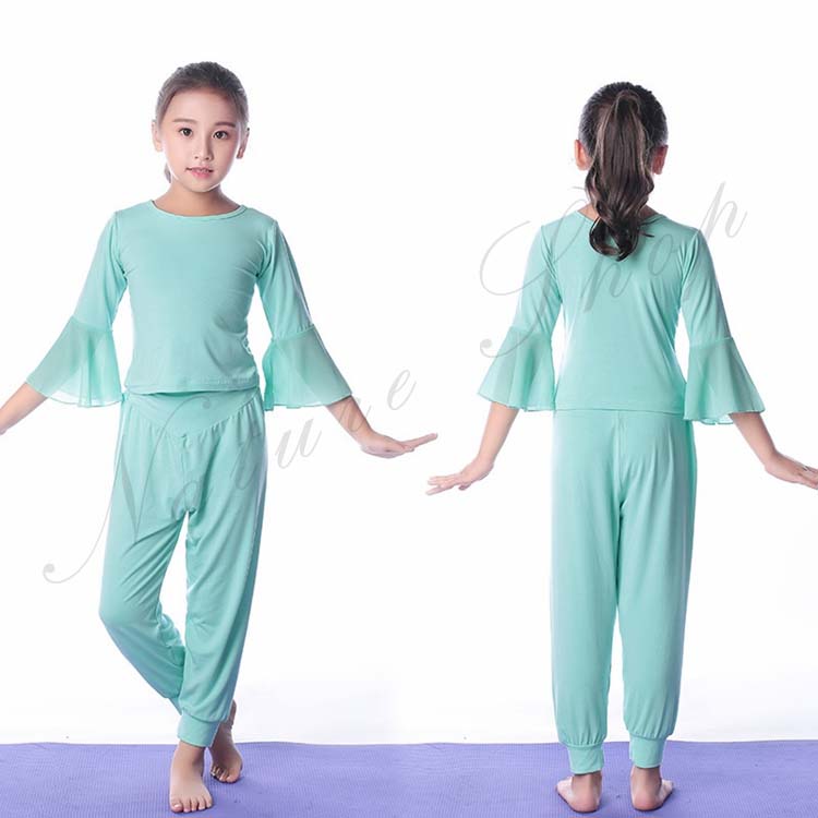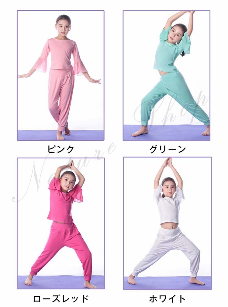 セットアップ 女の子 かわいい 体操服 白 七分袖 緑 バレエ トップス+サルエルパンツ レッスンウェア ロング ラテン 平日着可能 バレエ 練習着 飄逸 古典ダンス衣装 ヨガウェア
