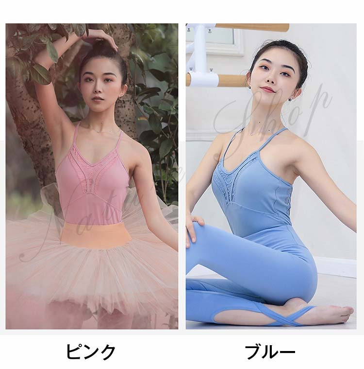 バレエウェア 社交ダンス レディース ピンク XL ブルー 新体操 S レオタード ストレッチ レース ヨガ 可愛い ジュニア バレエ用品 Vネック 美背シルエット 練習着 大人