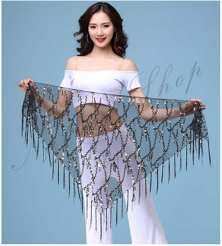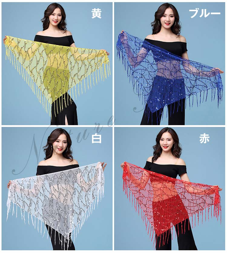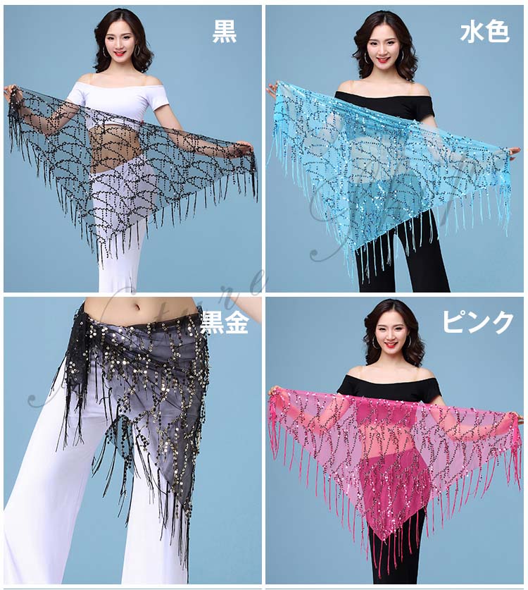 レディースベリーダンスヒップカバー フリンジ 三角 ベリーラテン社交ダンスレッスン着 スパンコールヒップスカーフ 9色ベリーヒップスカーフ タッセルスカーフ