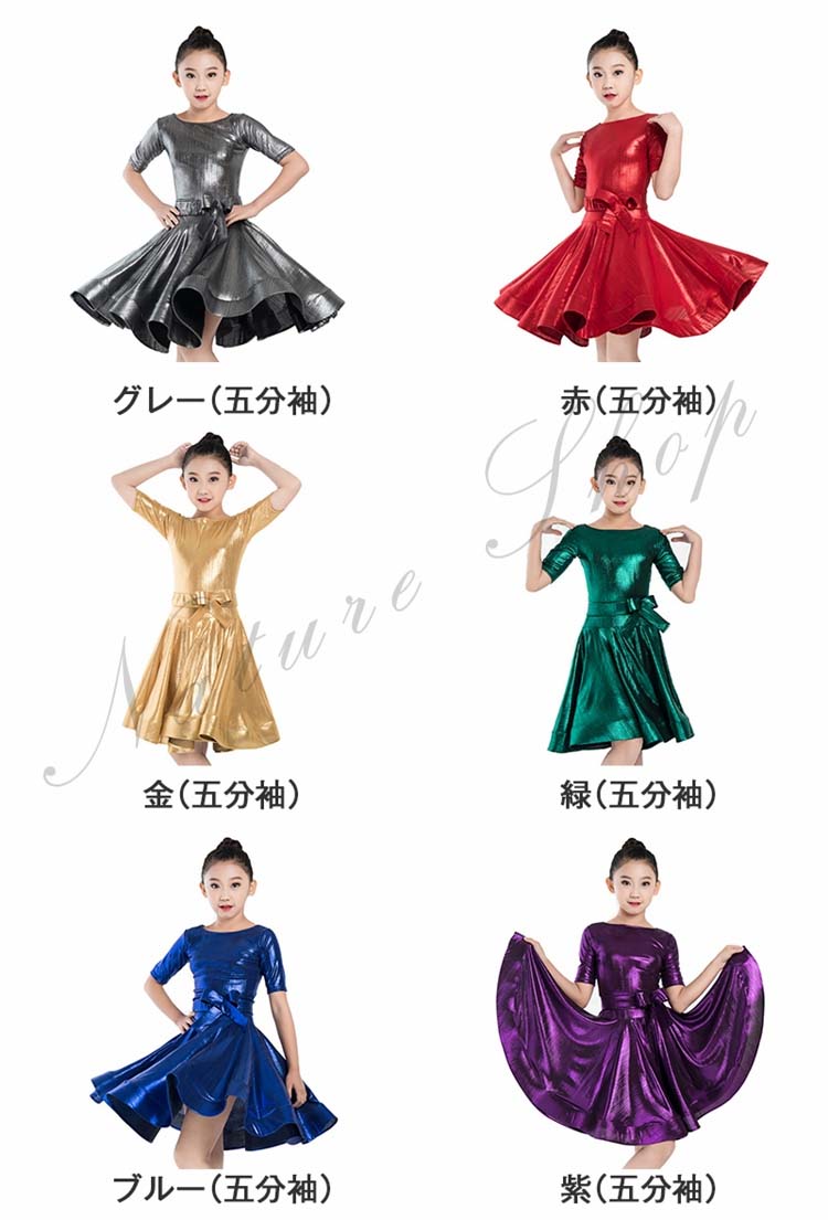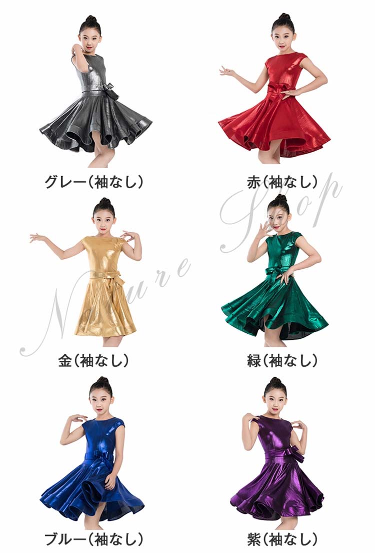 金 緑 紫 赤 子供ラテンダンスドレス