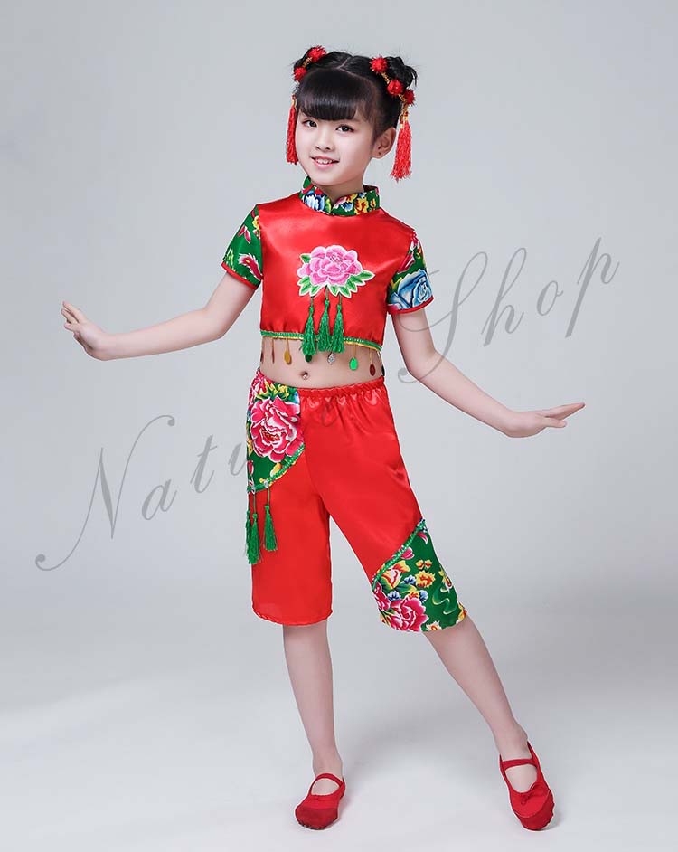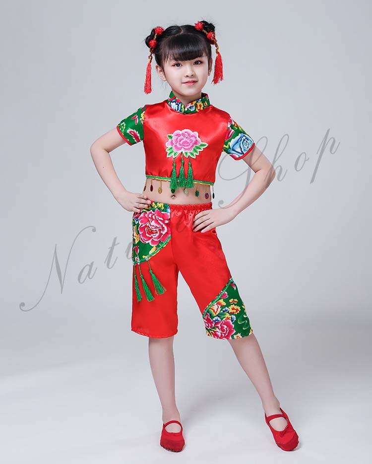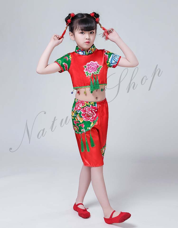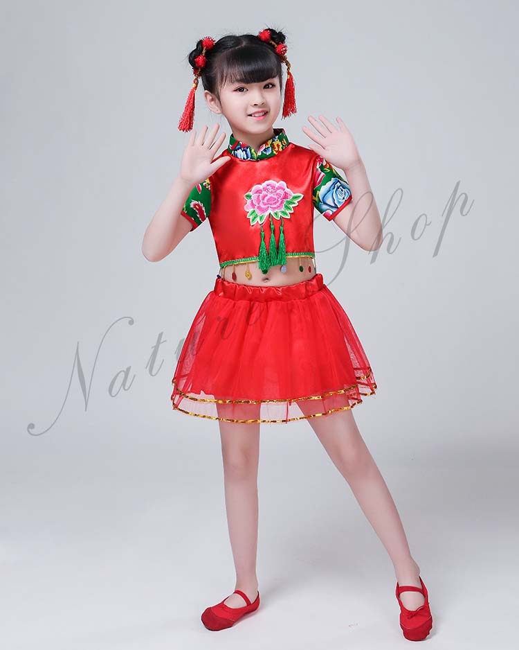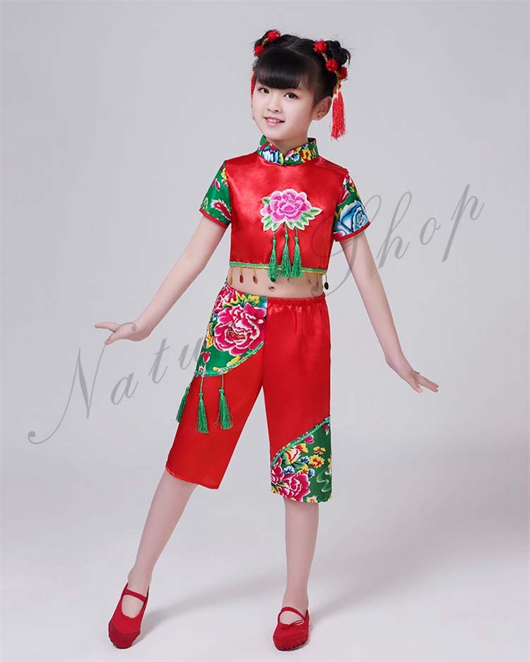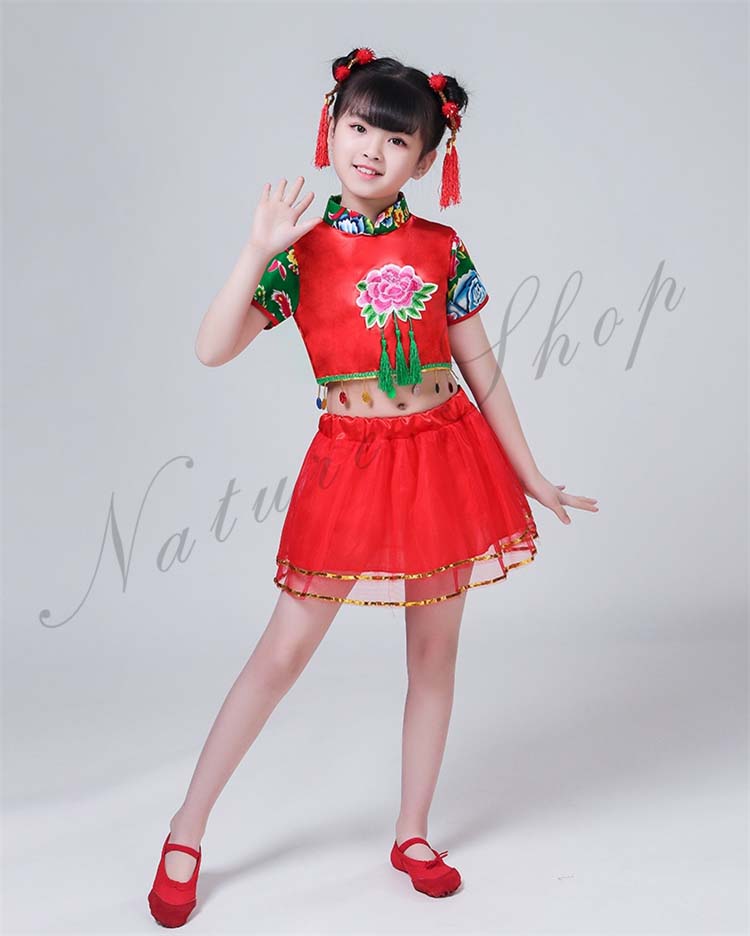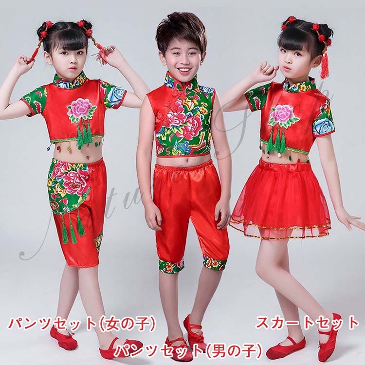 赤系 上下セット カンフー衣装 女の子
