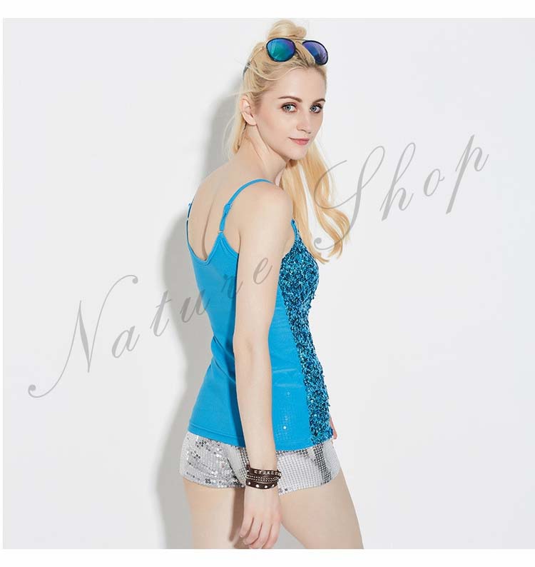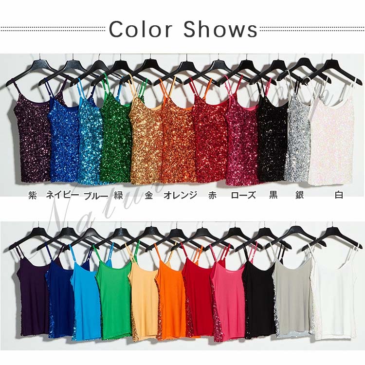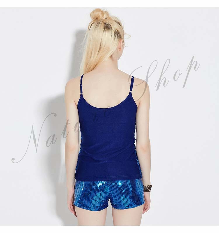 公演衣装 レディース用スパンコールキャミソールダンス衣装 肩紐サイズ調整可能 女性用舞台ステージ衣装 DSセクシーダンスウエア スパンコールtシャツ イベントパーティ学園際ジャズ