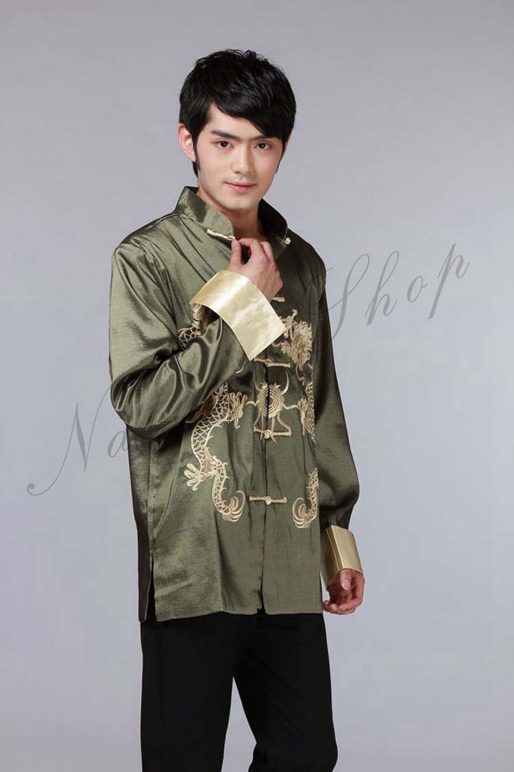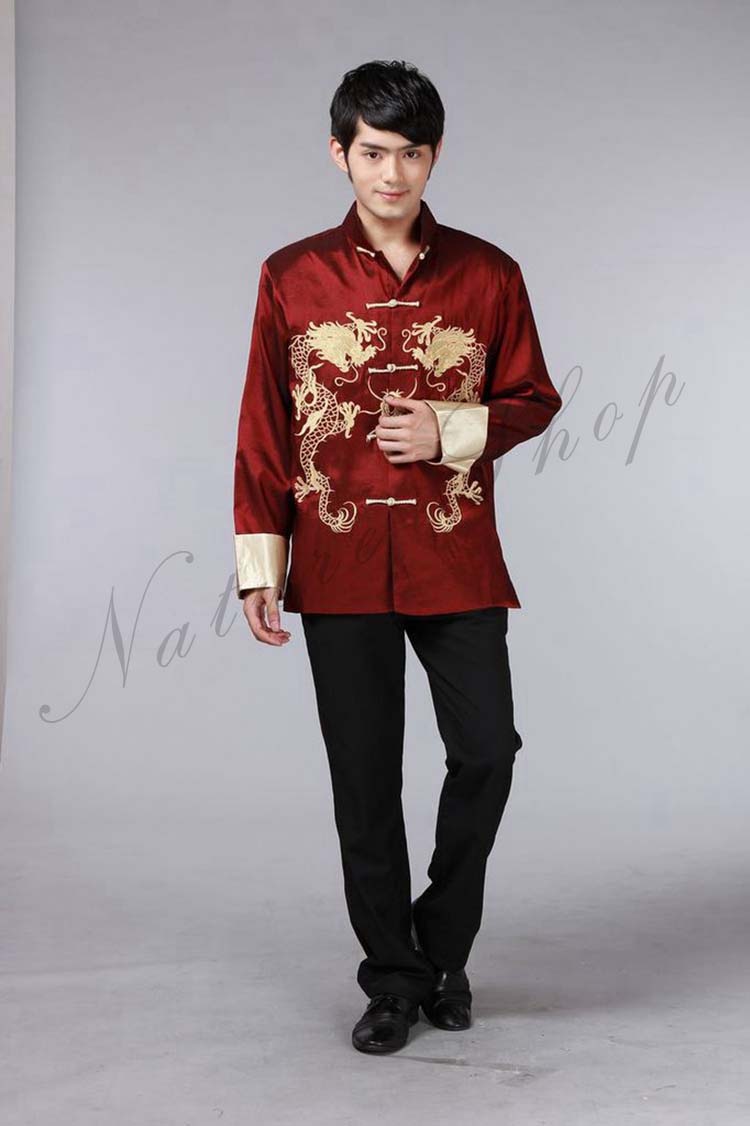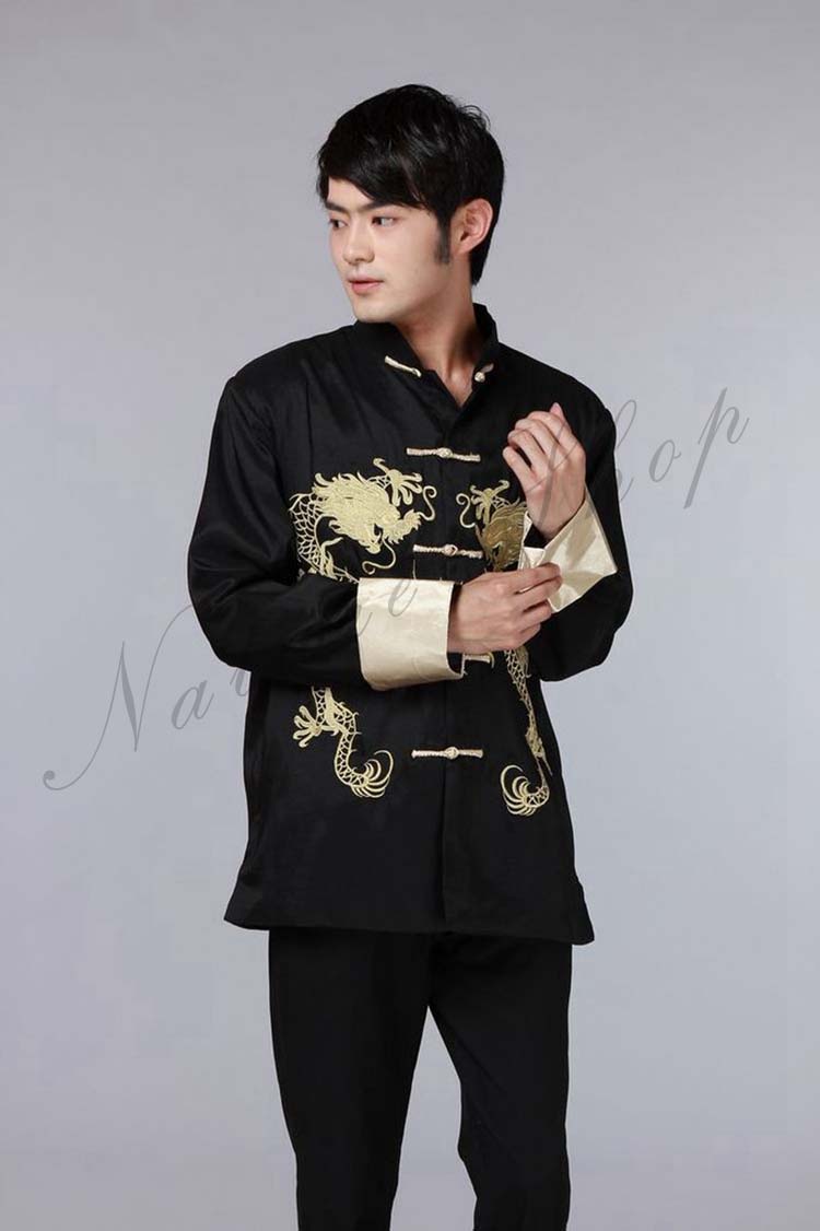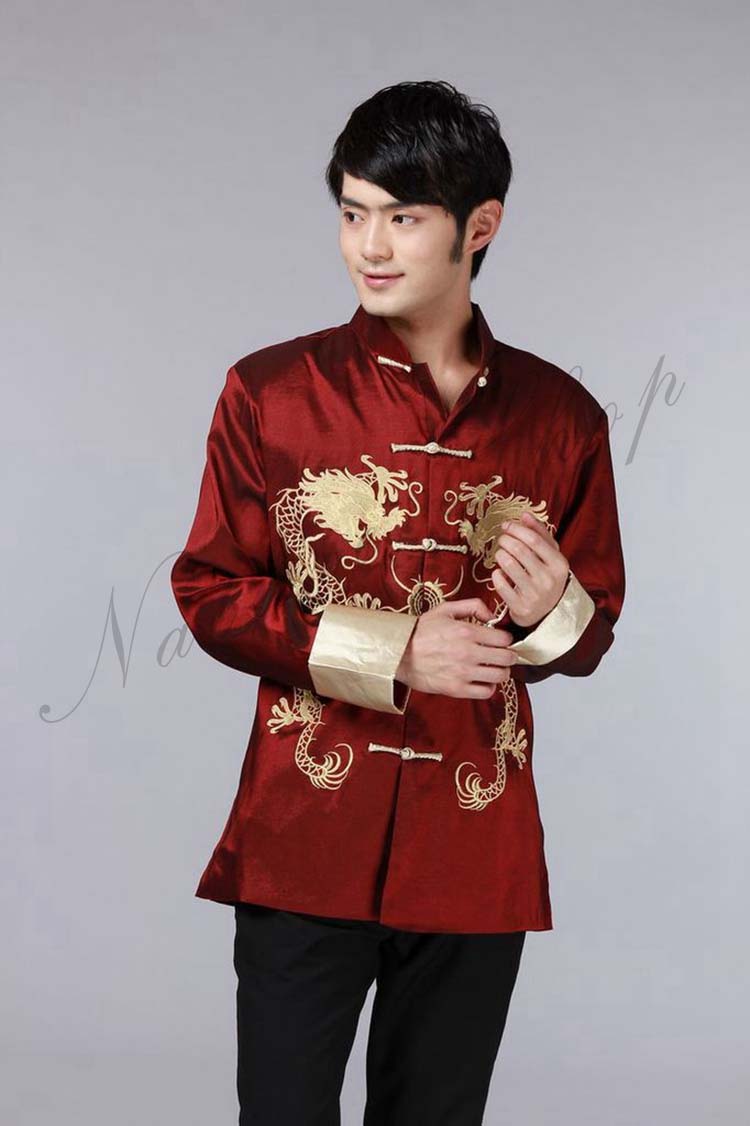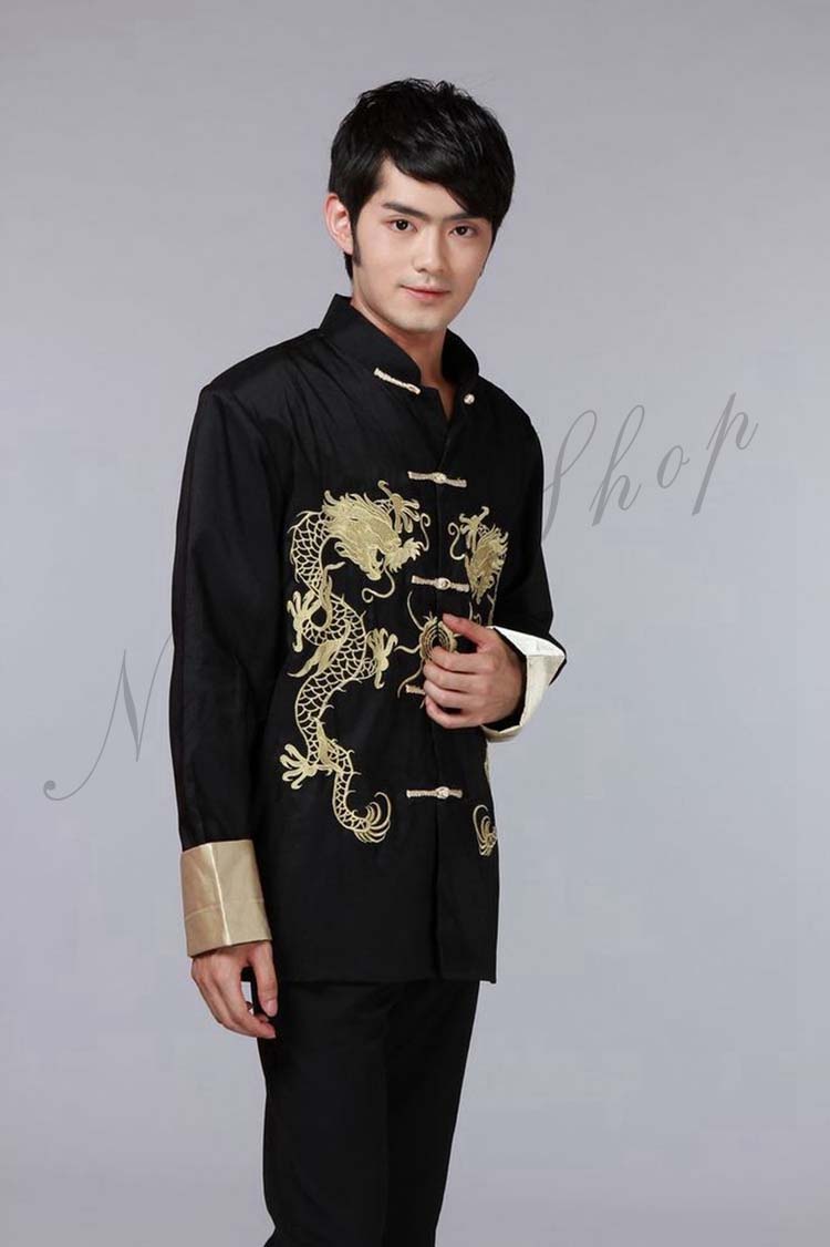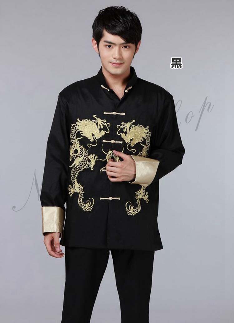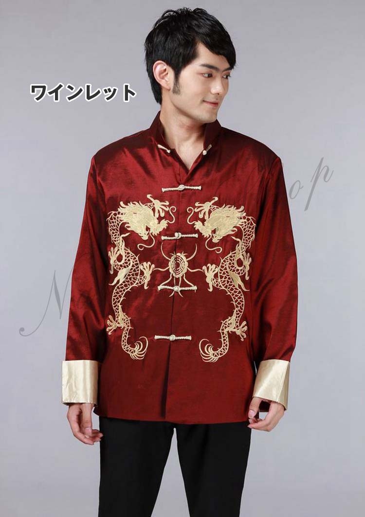 メンズチャイナドレス メンズチャイナ服 前開きチャイナブラウス 中国風龍刺繍ジャケット チャイナカラー 年会イベントステージ衣装 漢服唐装 華流コスプレ衣装 中華風舞台演出衣装