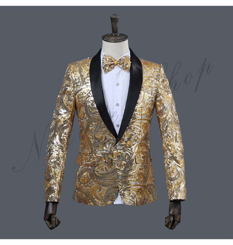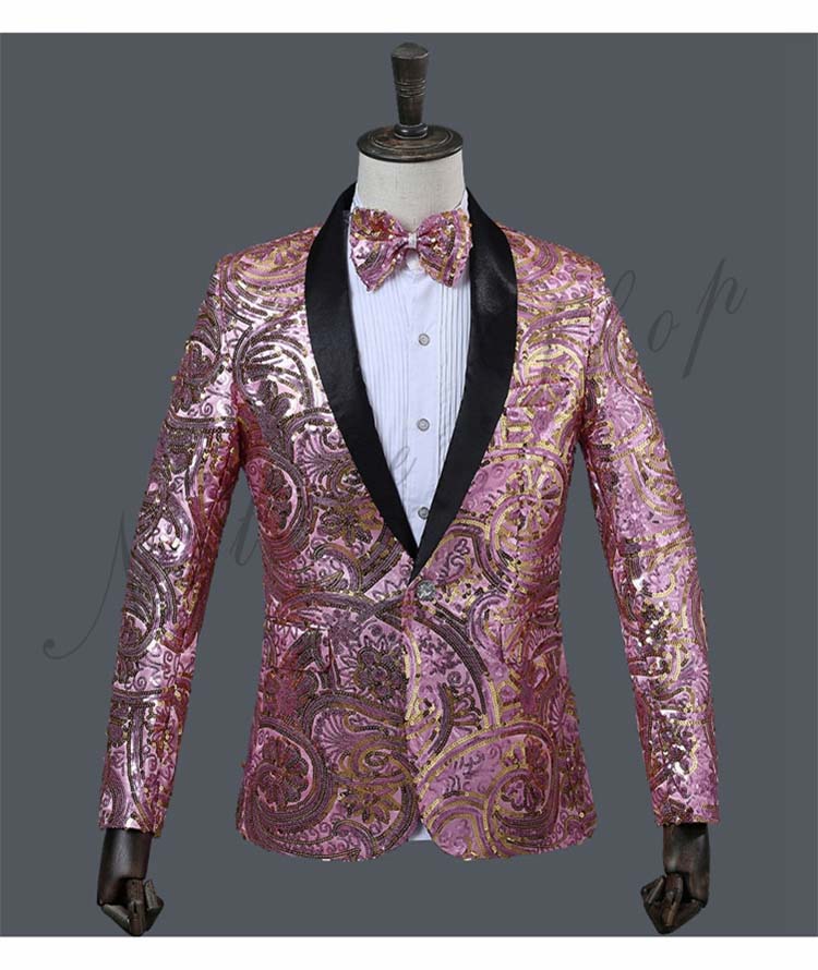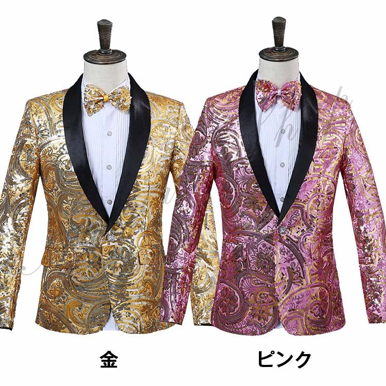 フォマール日常スーツ メンズスパンコールジャケット 結婚式 パーティーダンス衣装 タキシード コスプレ衣装 二次会 蝶ネクタイあり 司会者スタジオ撮影衣装 ジャズ舞台