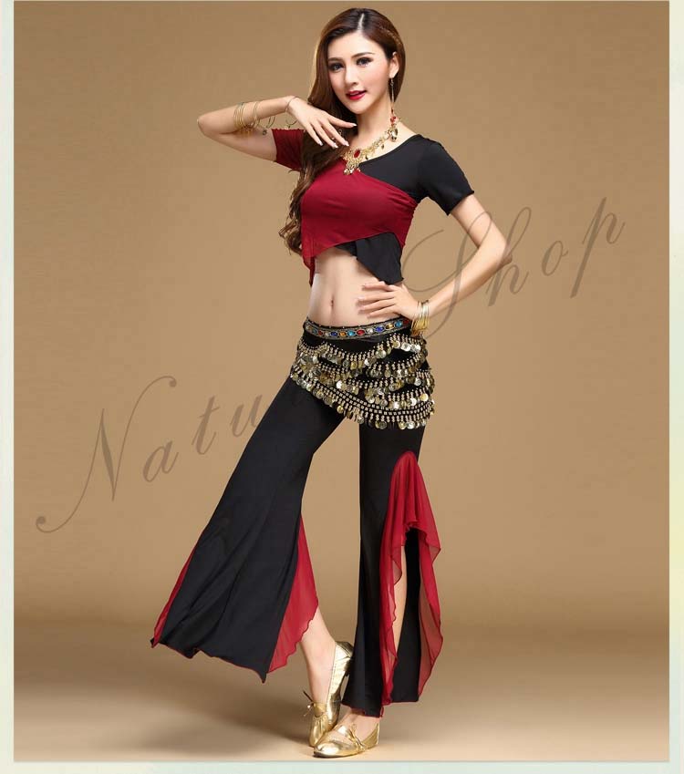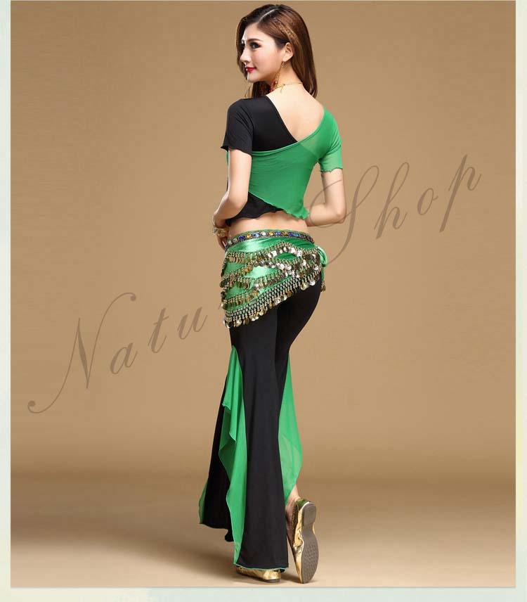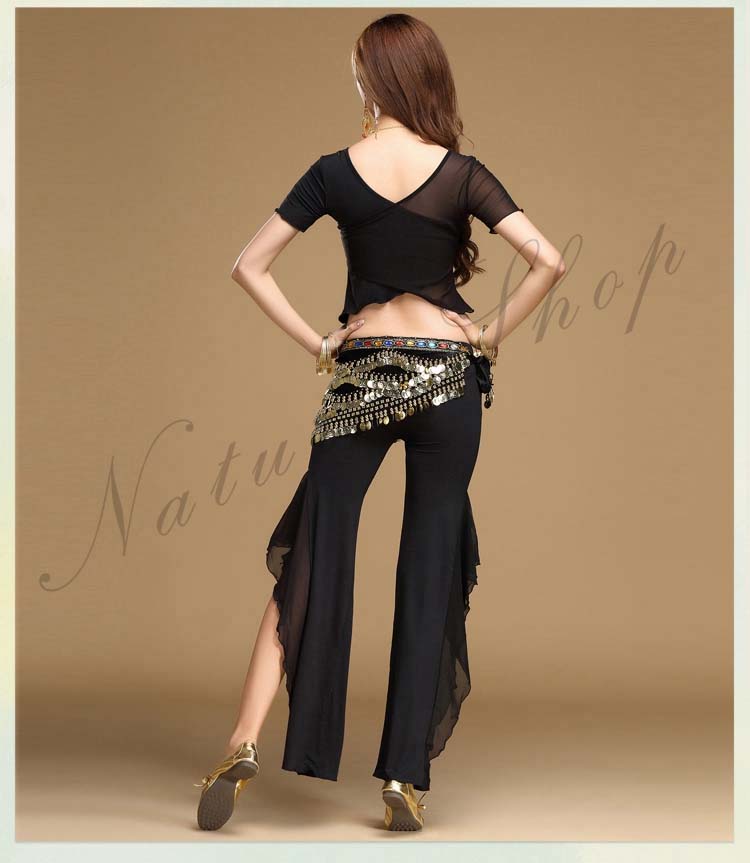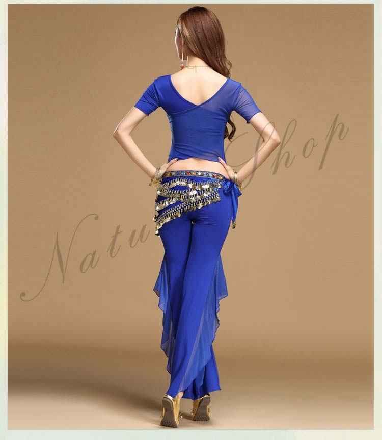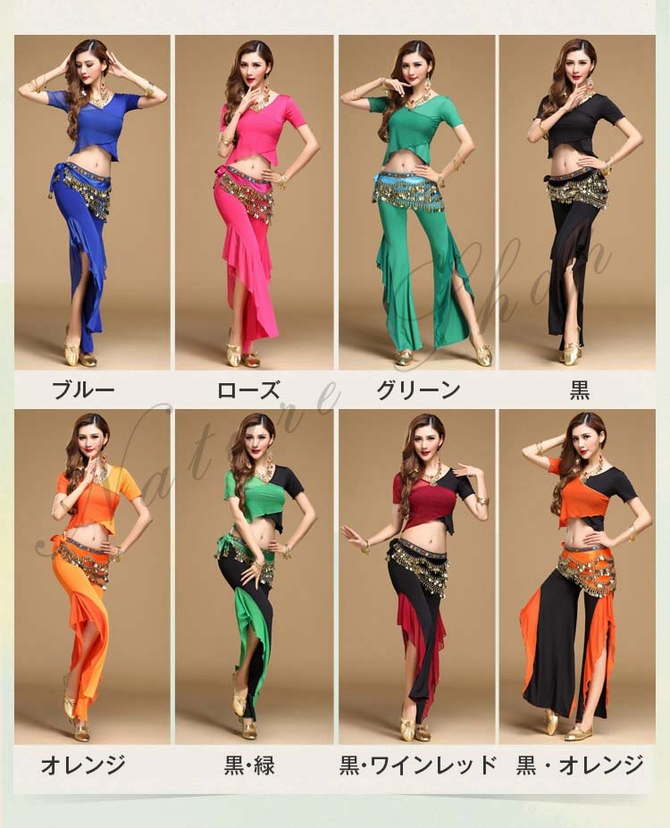 バイカラーイベント演出ドレス 美ラインラテンダンス ヒップスカーフ三点セットアップ 社交ダンスレッスン練習着 ヨガウエア ストレッチ華やか舞台衣装シフォン半袖ブラウス