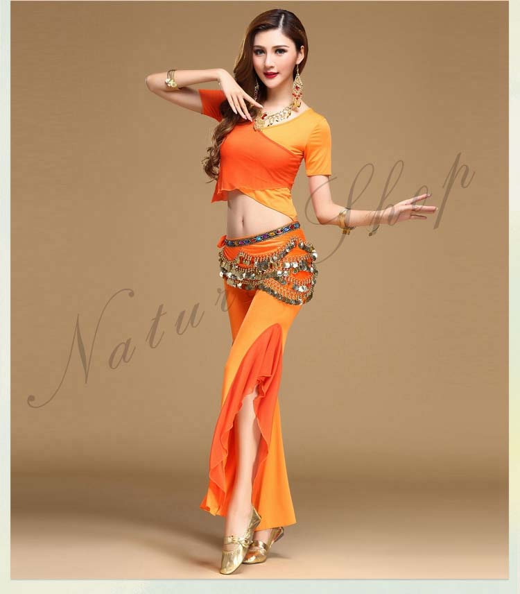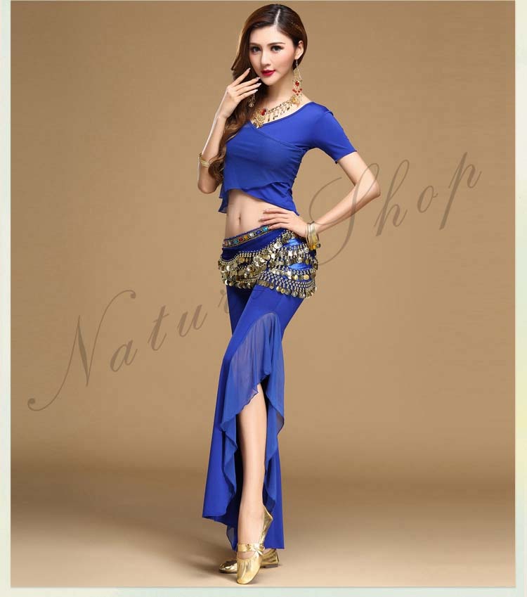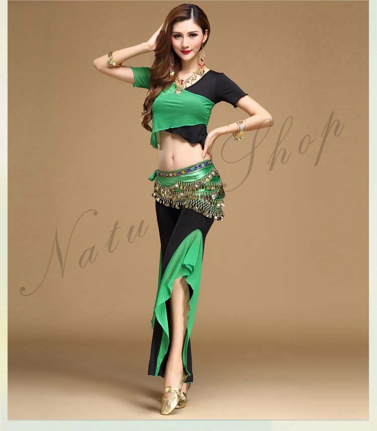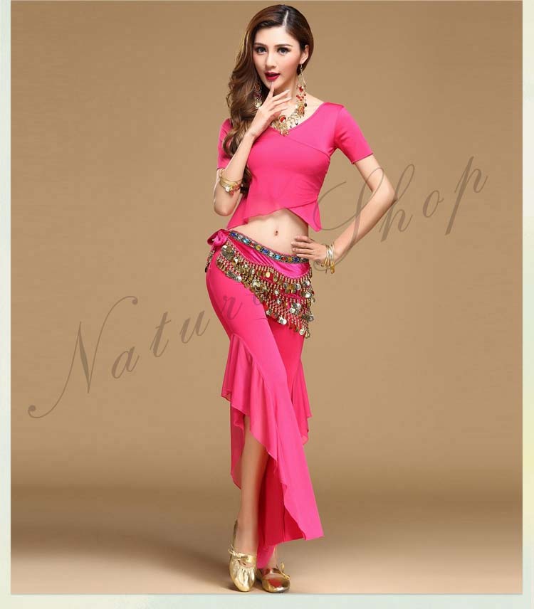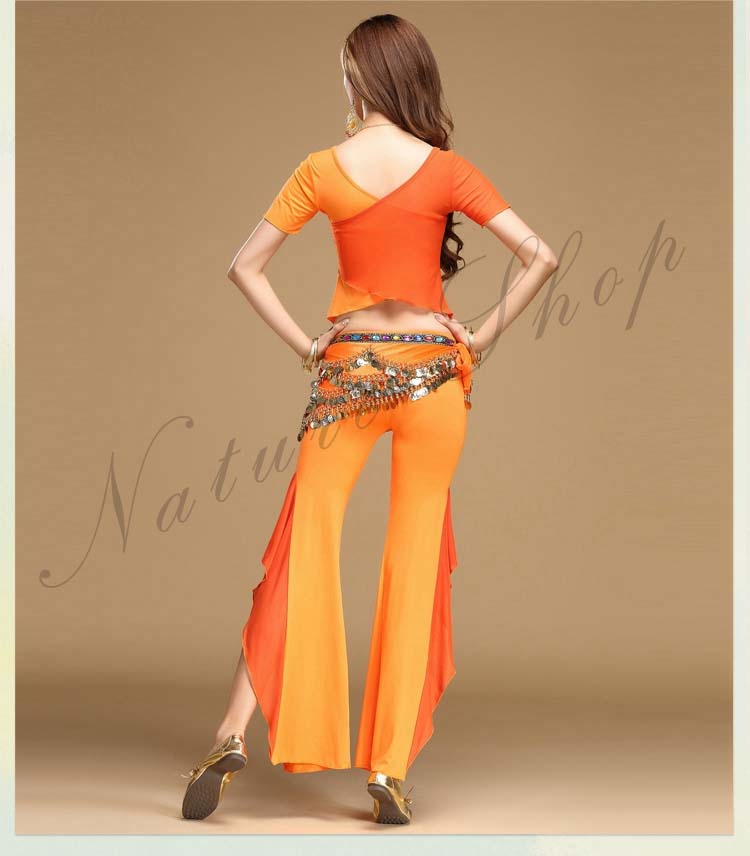 バイカラーイベント演出ドレス 美ラインラテンダンス ヒップスカーフ三点セットアップ 社交ダンスレッスン練習着 ヨガウエア ストレッチ華やか舞台衣装シフォン半袖ブラウス