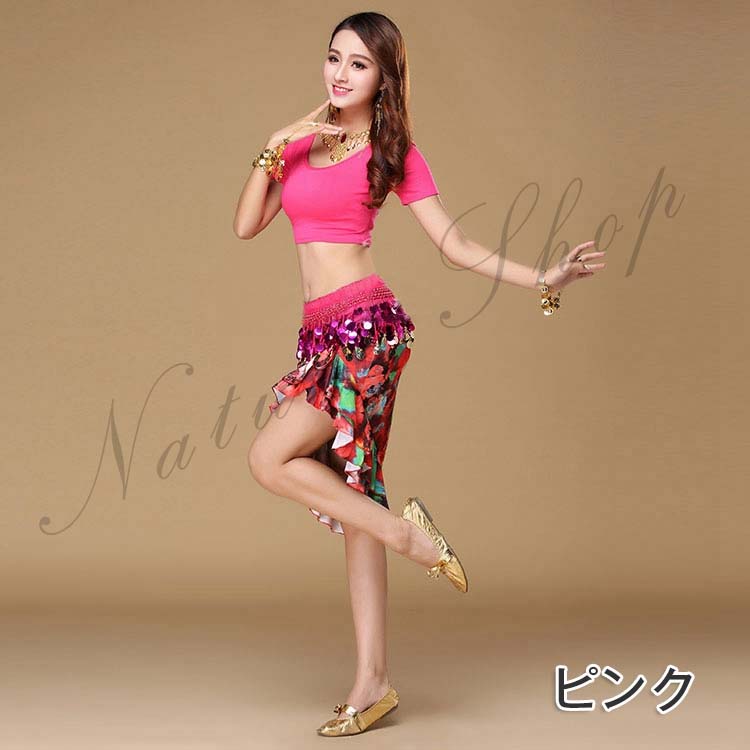 団体演出服 ヨガ レッスン着 コスプレ 花柄ヒョウ柄スカート アラジン 舞台ダンス衣装 舞台ステージ演出服 三点セット ストレッチ フィットネス ベリーダンス衣装 ラテンダンス