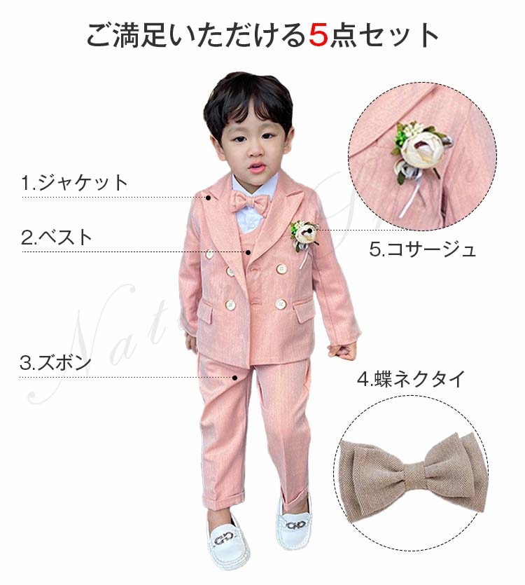 子供スーツ 5点セット 男の子 礼服 スーツ子供服 長袖 フォーマル 赤ちゃん ベビー スーツ 上下セット キッズスーツ ジャケット ベスト パンツ プローチ 蝶ネクタイ フォーマルスーツ