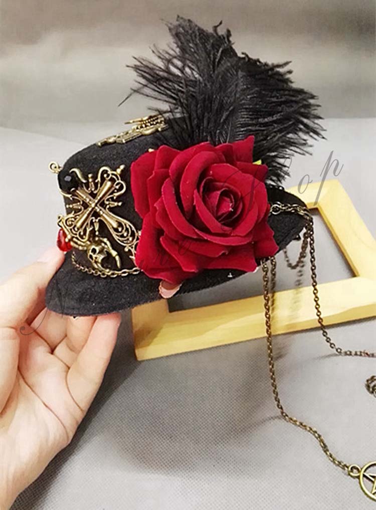 ミニハット レース付き 薔薇柄 トークハット 帽子 ヴィンテージ レトロ 個性的 撮影会 コスプレ フォーマル パーティー ローズ プレゼント ギフト 贈り物 スチームパンク