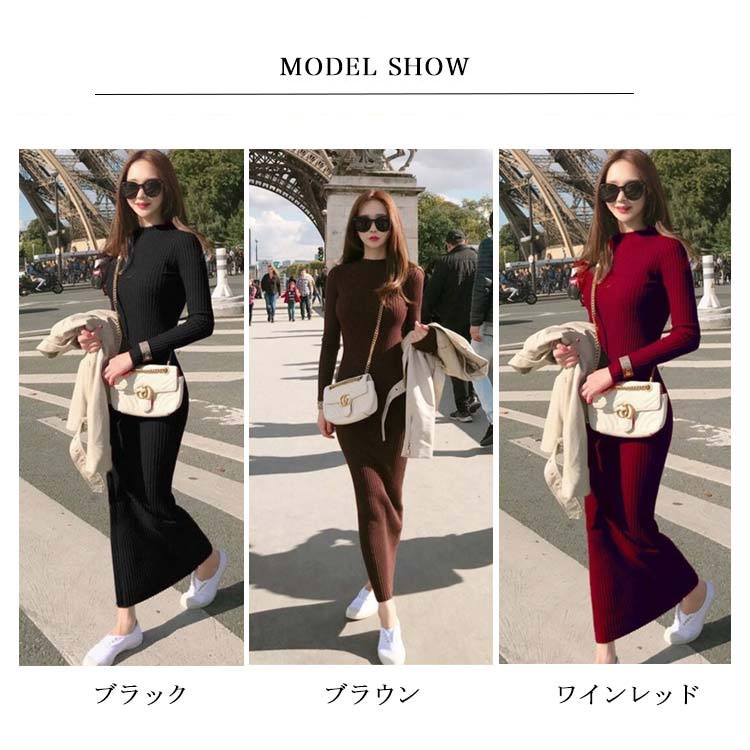 ニット ワンピース タイト ロング ロ