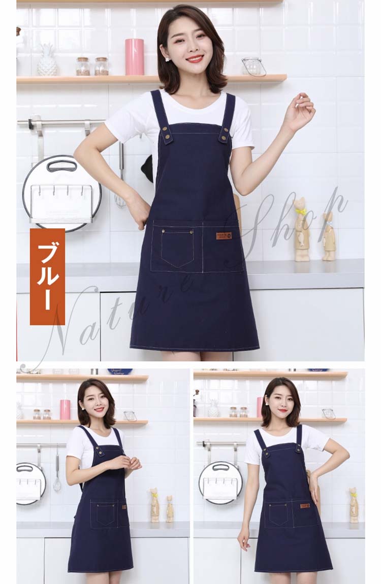 デニム H型エプロン おしゃれ ポケット 男女兼用 調整可能 汚れにくい 介護 脱着簡単 家庭用 保育士 ガーデン カフェ 作業エプロン