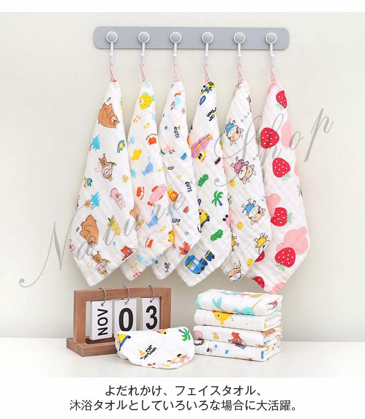 ガーゼハンカチ 新生児 5枚セット ミニハンカチ 赤ちゃん 6層ガーゼ フェイスタオル 柔らかい お洒落 ベビータオル ベビー用品 可愛い 通気性 速乾 コットン 出産祝い