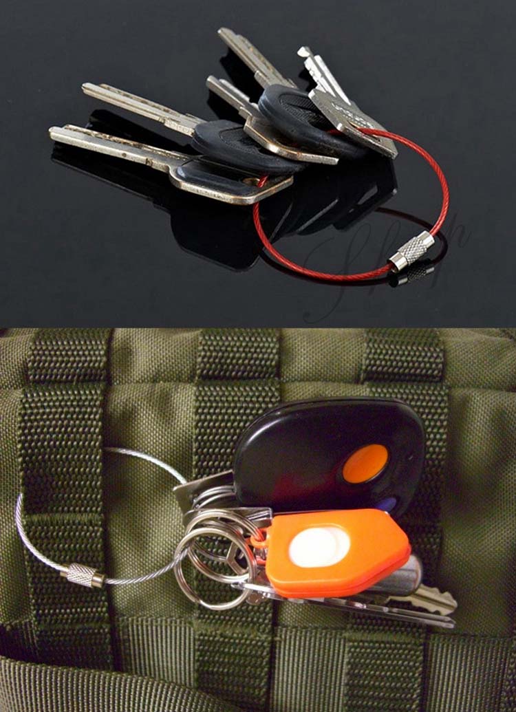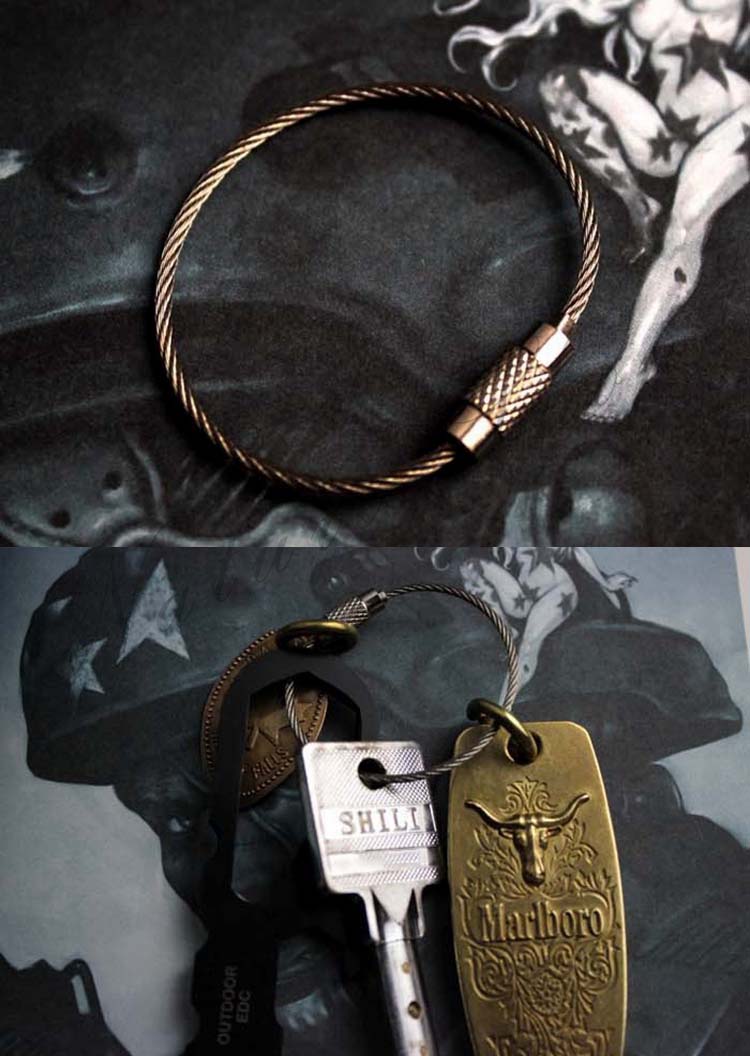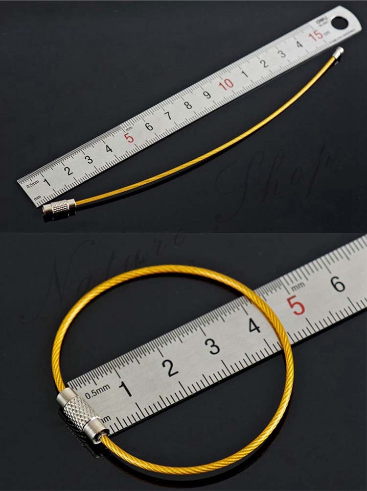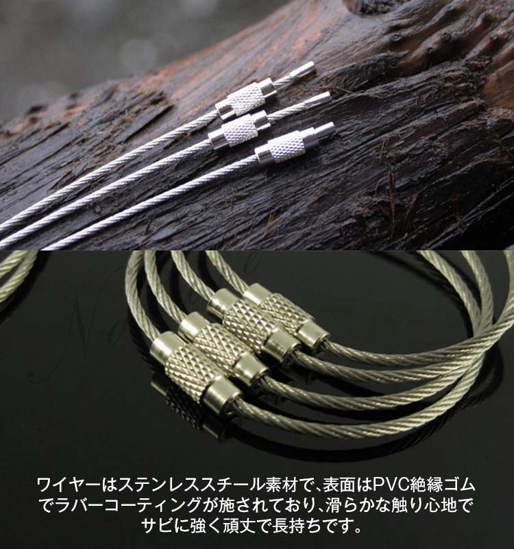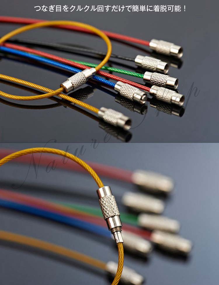 ワイヤーキーリング 虹柄 キーチェーン ステンレス 7color ロックワイヤー アクセサリー 15cm キーホルダー 7本セット