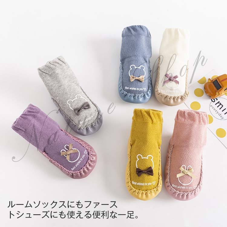 靴 ベビー ルームシューズ 幼児 ソックス ソックスシューズ 赤ちゃん 快適 リボン 靴下 落下防止 滑り止め付き 春秋冬 可愛い 出産祝い プレゼント