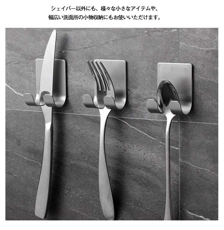4個入れセット バスルーム 収納 粘着フック ステンレス バスルームラック バスルームシェイバーホルダー お風呂 バスルーム シェイバーホルダー