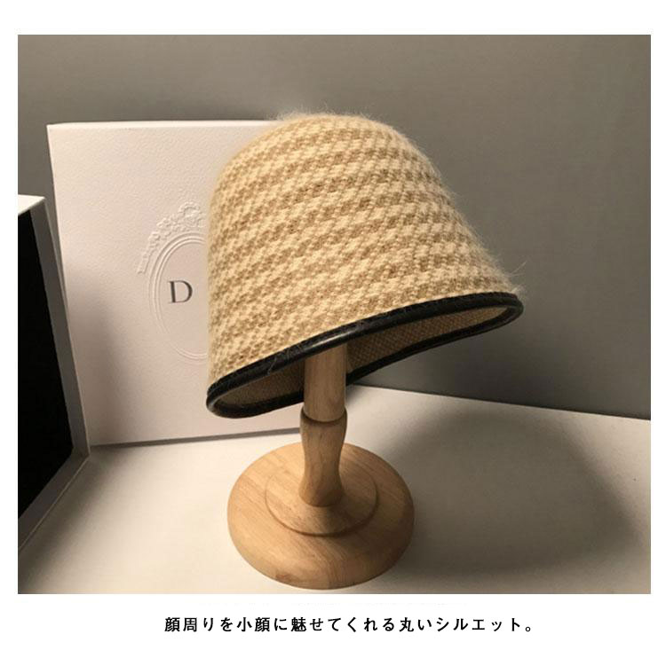ハット レディース 帽子 バケットハット スウェード ハット 千鳥柄 人工スエード 女性 ファッション 個性的 カジュアル オシャレ旅行