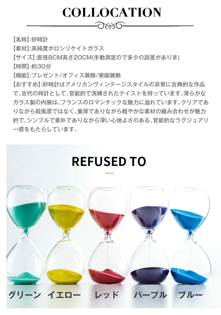 砂時計 5色 装飾品 運動 飾り物 プレゼント 立体感 室内装飾品 直径8cm 砂時計 学習 キッチンタイマー オフィス 書斎 約30分 リビング ウェディングギフト誕生日プレゼント