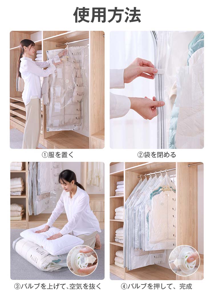 圧縮袋 衣類 バルブハンガー バルブ式圧縮袋 収納袋 衣類圧縮袋 ダウンジャケット 洋服 吊るせる衣類圧縮袋
