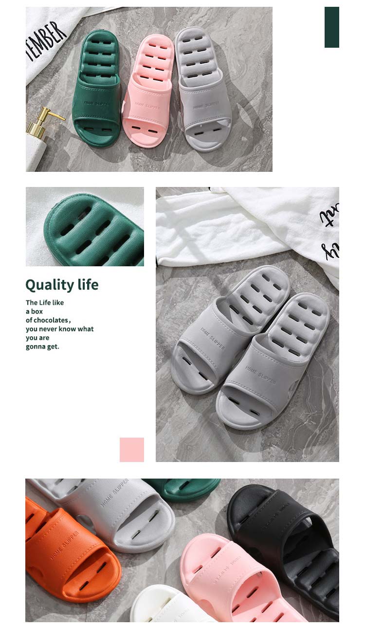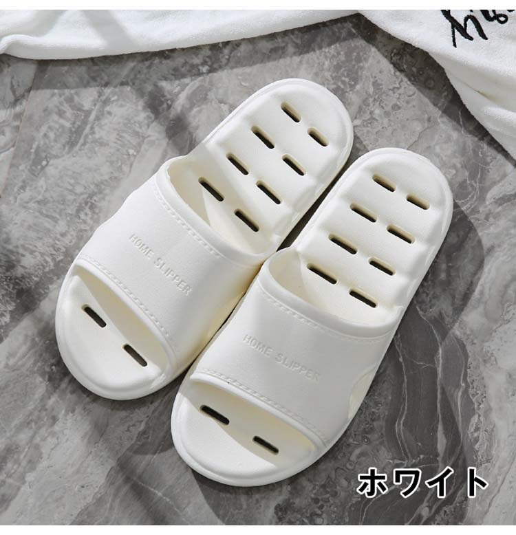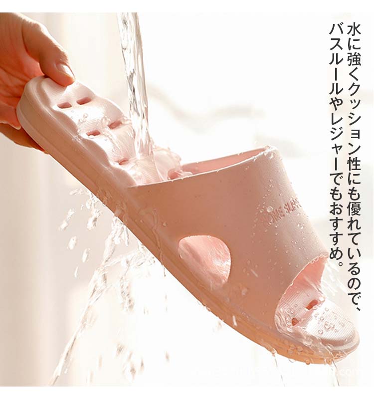 底に穴が開いているので水切れが早く、滑りにくく歩きやすいので、お風呂場やベランダ、リビングなどでのバススリッパなど、様々なシーンで活躍します。