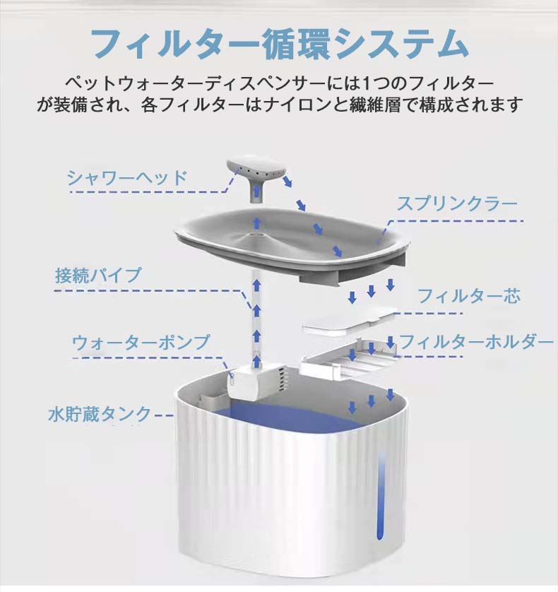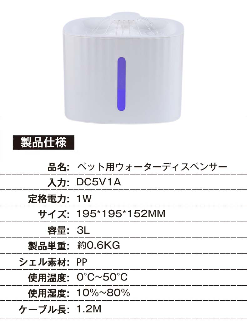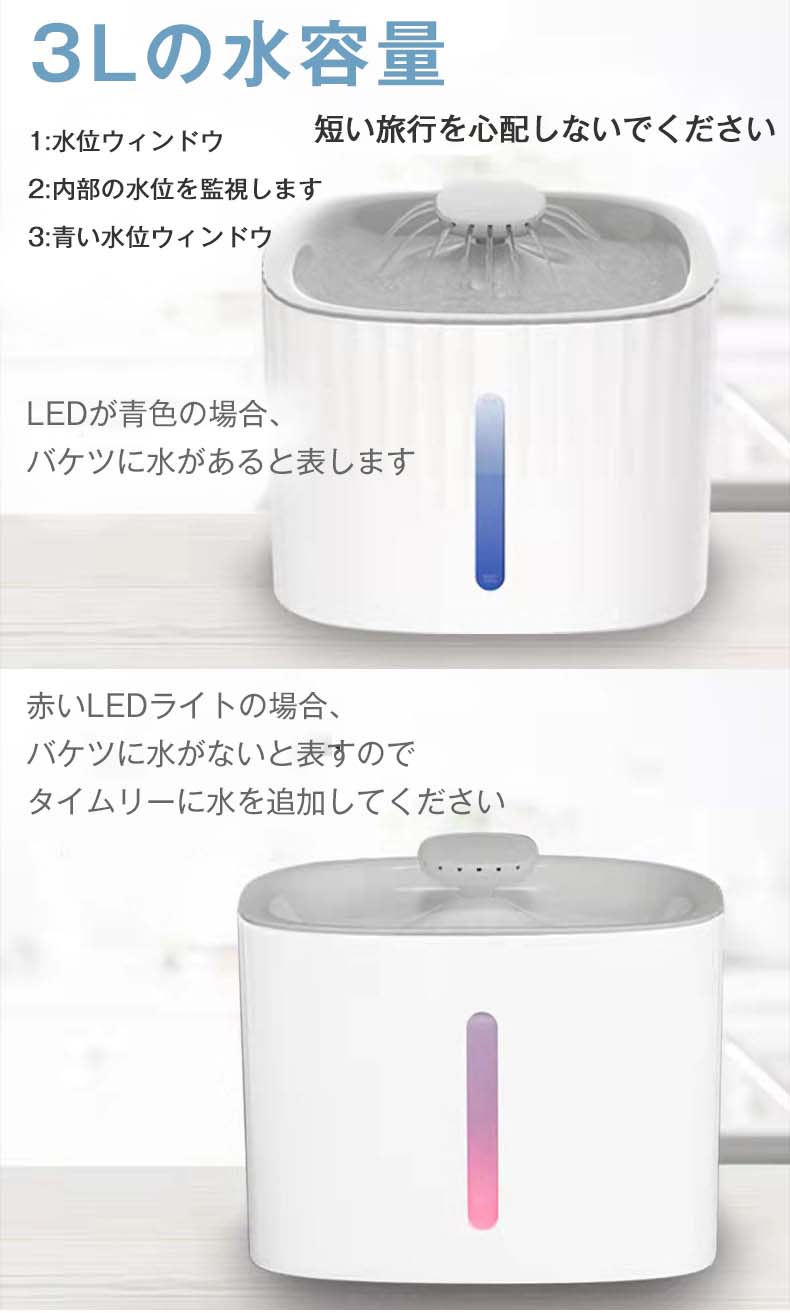 ペット給水器 犬 猫自動給水器 3L大容量 水量目視可能 LEDライト付き 活性炭フィルター 静音 循環式 省エネ 犬猫用水飲み器 お留守番対応 花びら 給水機 健康 衛生 動物用