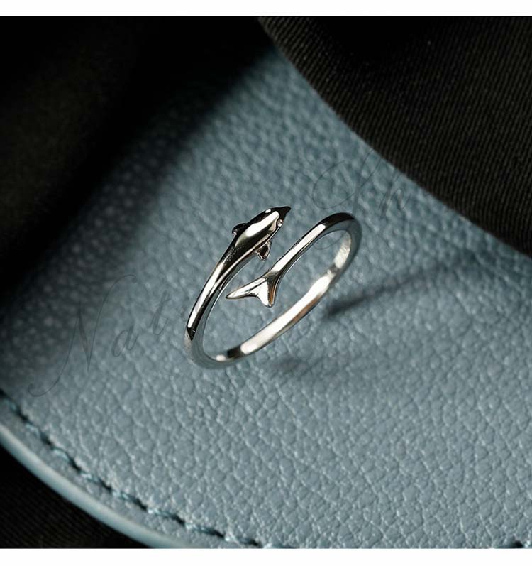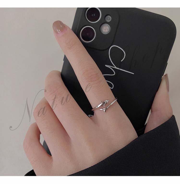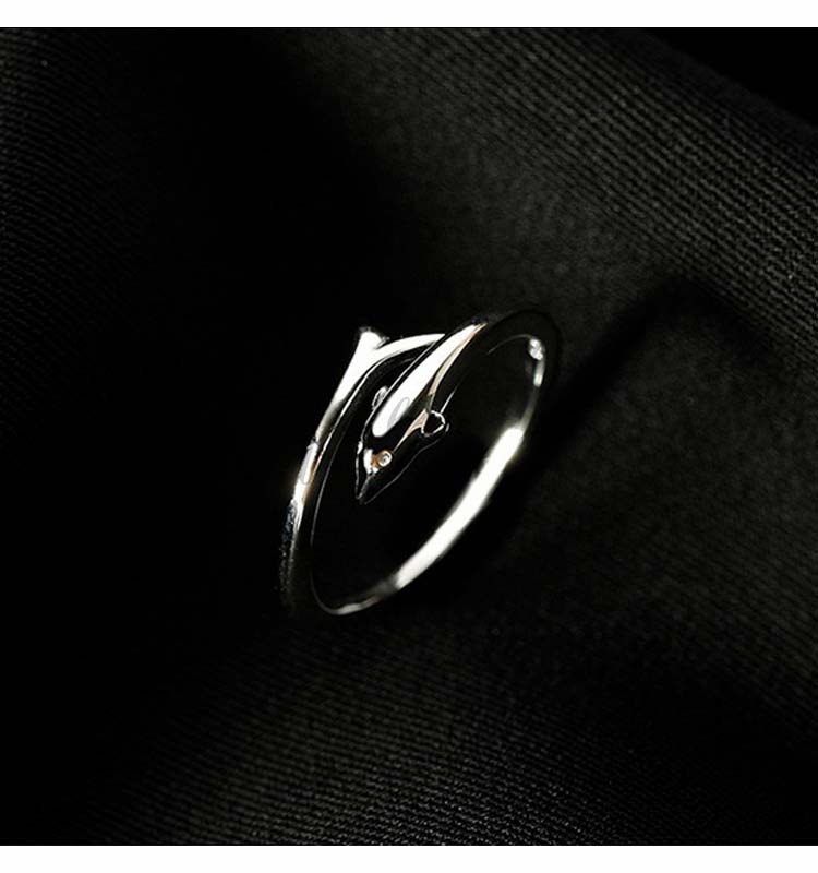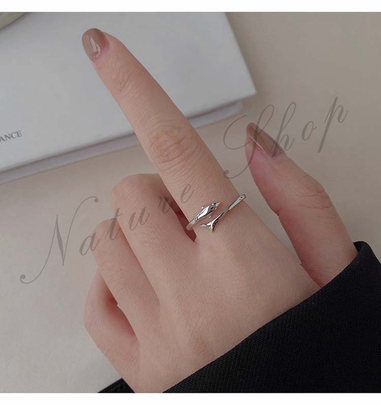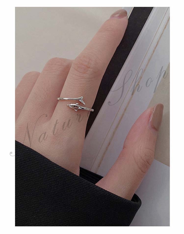 オープンリング 指輪 アクセサリー イルカリング しいら モチーフ デザイン レディース 大人 おしゃれ 繊細 可愛い シック 一層目の銀 リング 誕生日 クリスマス プレゼント ギフト