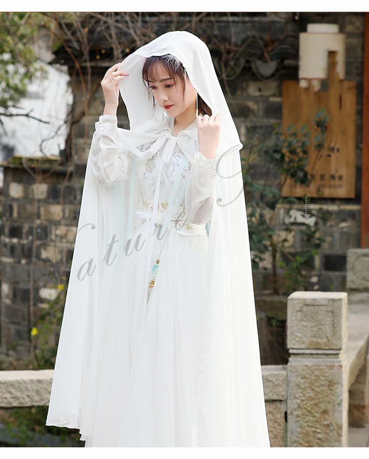 マント 漢服 ロング丈 チャイナドレス レディース オーバコート 中華服 チャイナ服 華流 コスプレ衣装 お姫様 仮装 変装 シフォン ロング ケープ シンプル フード有り 無地 肩掛け