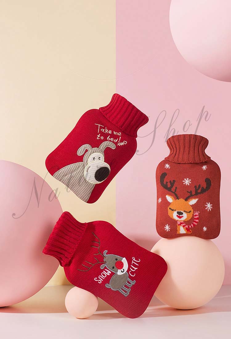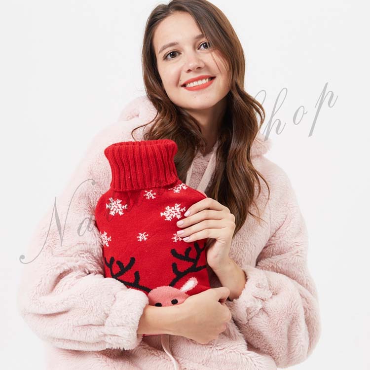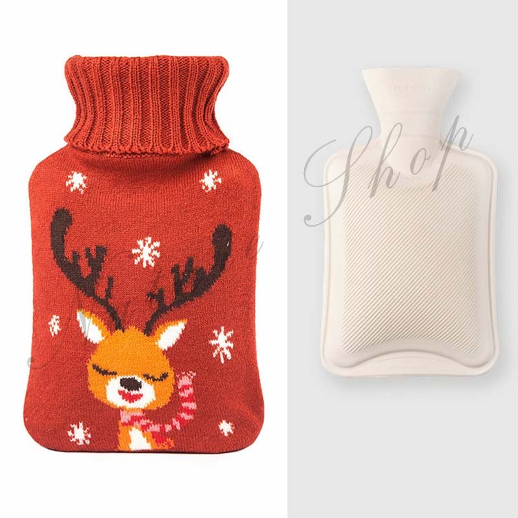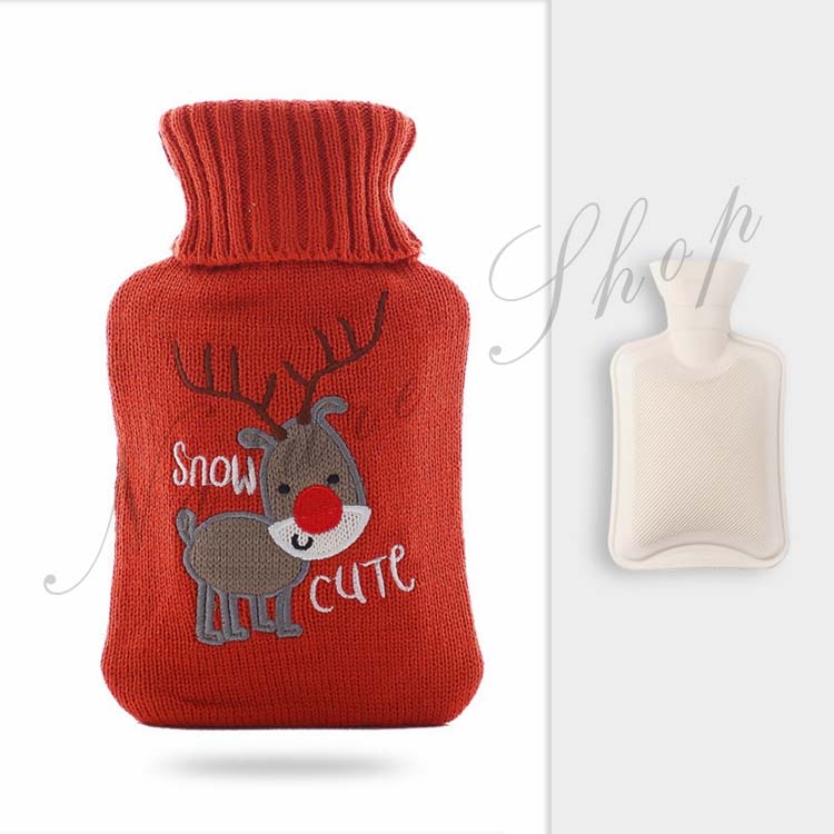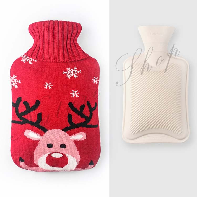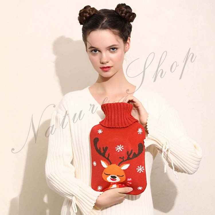 ニットカバー 湯たんぽ 約500ml容量 温水ボトル バッグ 保温グッズ ゆたんぽ お湯入れ 柔らい 手足 冷え対策 水枕 トナカイ 可愛い クリスマス