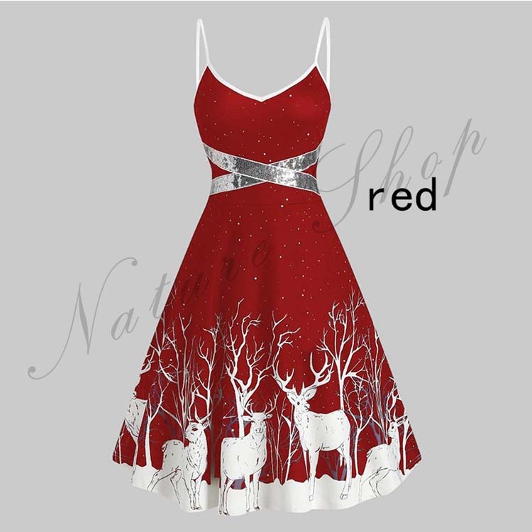 クリスマスドレス レディース コスプレ 女性 ドレス キャミソールドレス トナカイ柄 3color コスチューム サンタ クリスマス 引き裾 トナカイ ロング丈 細身ワンピ 舞台服 お揃い