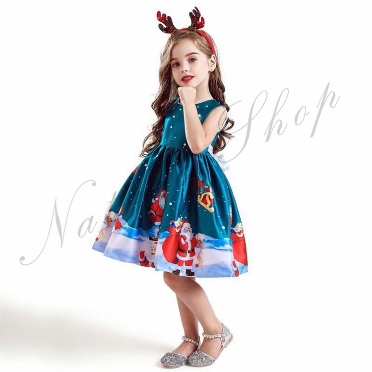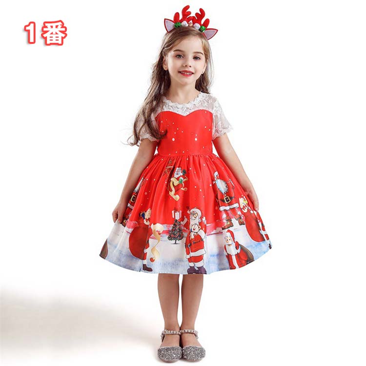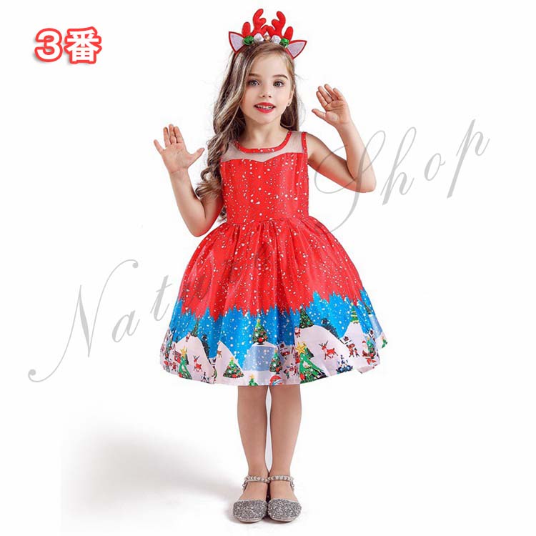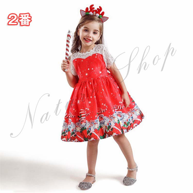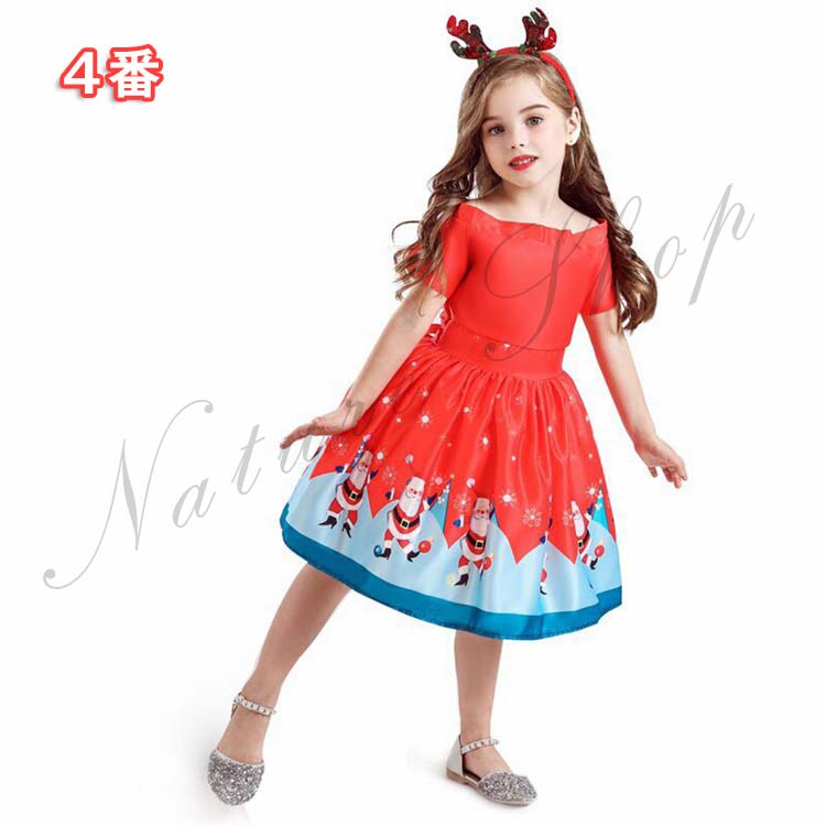 子供ドレス ワンピース 子ども クリスマス コスチューム コスプレ衣装 可愛い キッズ サンタクロース柄 7タイプ クリスマスプ レゼントサンタ 女の子 2点セット