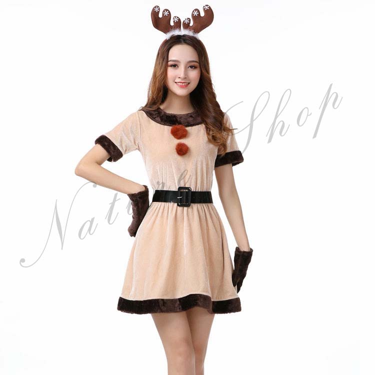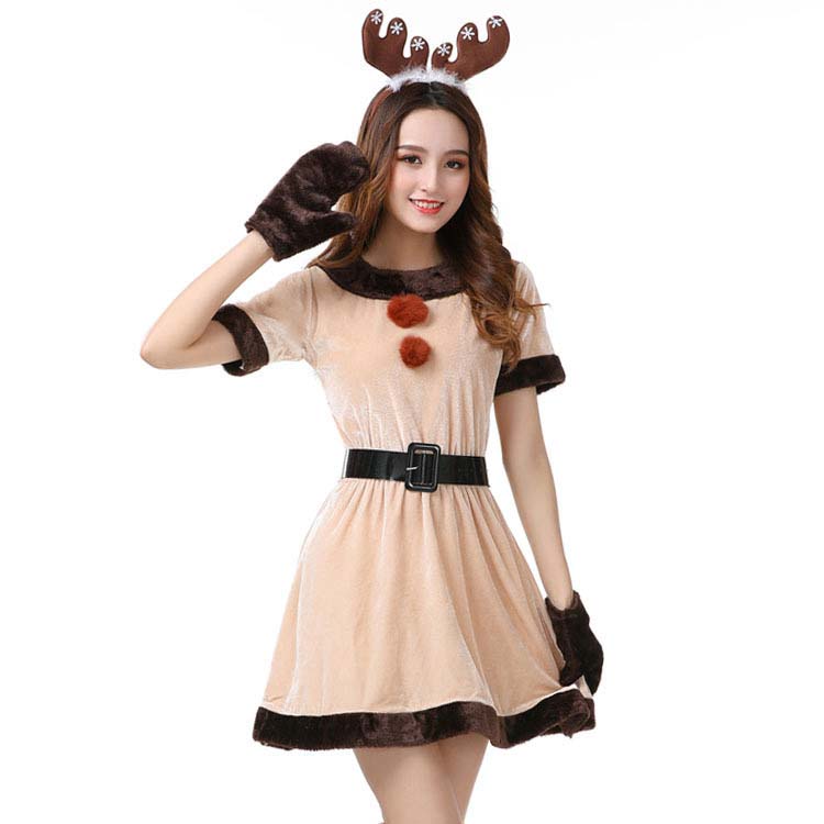 クリスマス コスプレ トナカイ サンタコス レディース 鹿の模様 可愛い かわいい クリスマス サンタクロース パーティー 手袋 cosplay コスチューム ミニスカ サンタ コスプレ衣装